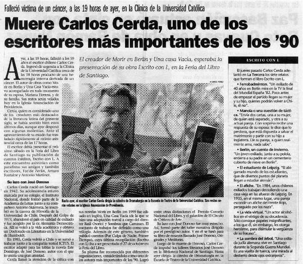 Muere Carlos Cerda, uno de los escritores más importantes de los '90. [artículo]