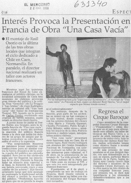Interés provoca la presentación en Francia de obra "Una casa vacía" [artículo]