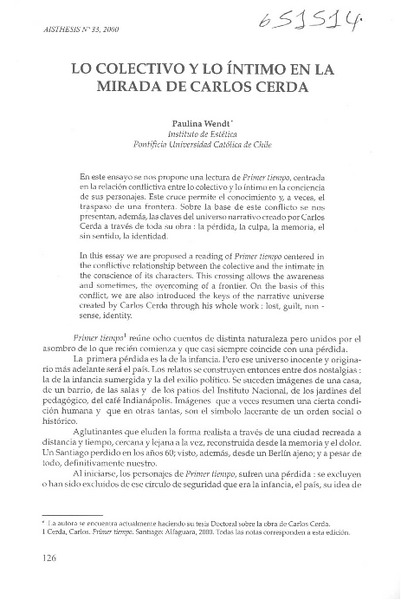 Lo colectivo y lo íntimo en la mirada de Carlos Cerda [artículo] Paulina Wendt