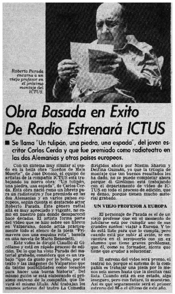 Obra basada en éxito de radio estrenará ICTUS. [artículo]