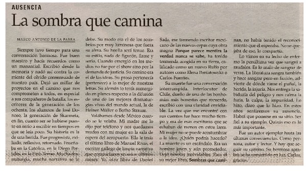 La sombra que camina [artículo] Marco Antonio de la Parra.