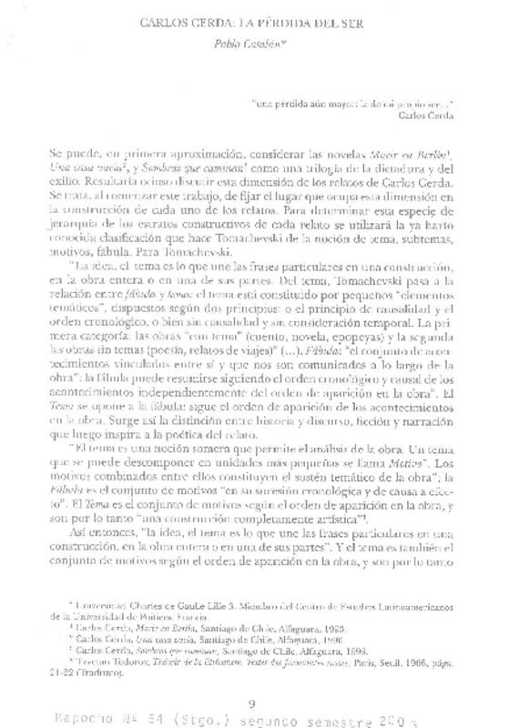 Carlos Cerda: la pérdida del ser [artículo] Pablo Catalán.