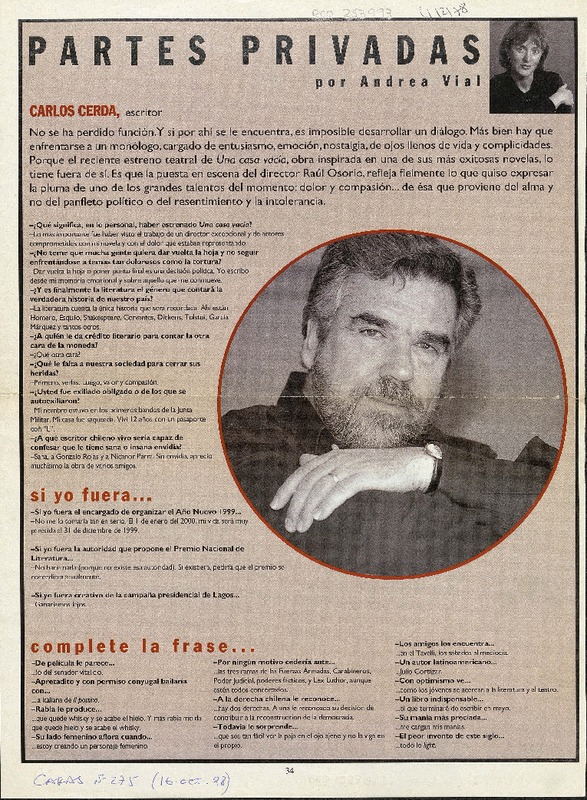 Autores chilenos - Entrevistas - Cerda, Carlos - Casa vacia