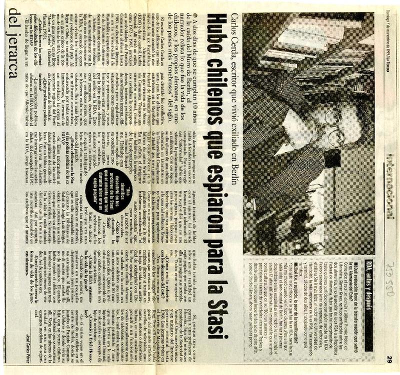 Hubo chilenos que espiaron para la Stasi [entrevistas] [artículo] : José Carlos Pérez.