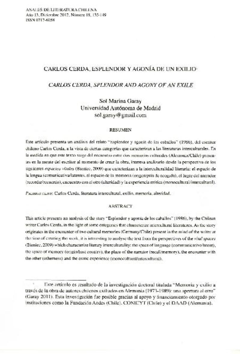 Carlos Cerda, esplendor y agonía de un exilio [artículo] Sol Marina Garay
