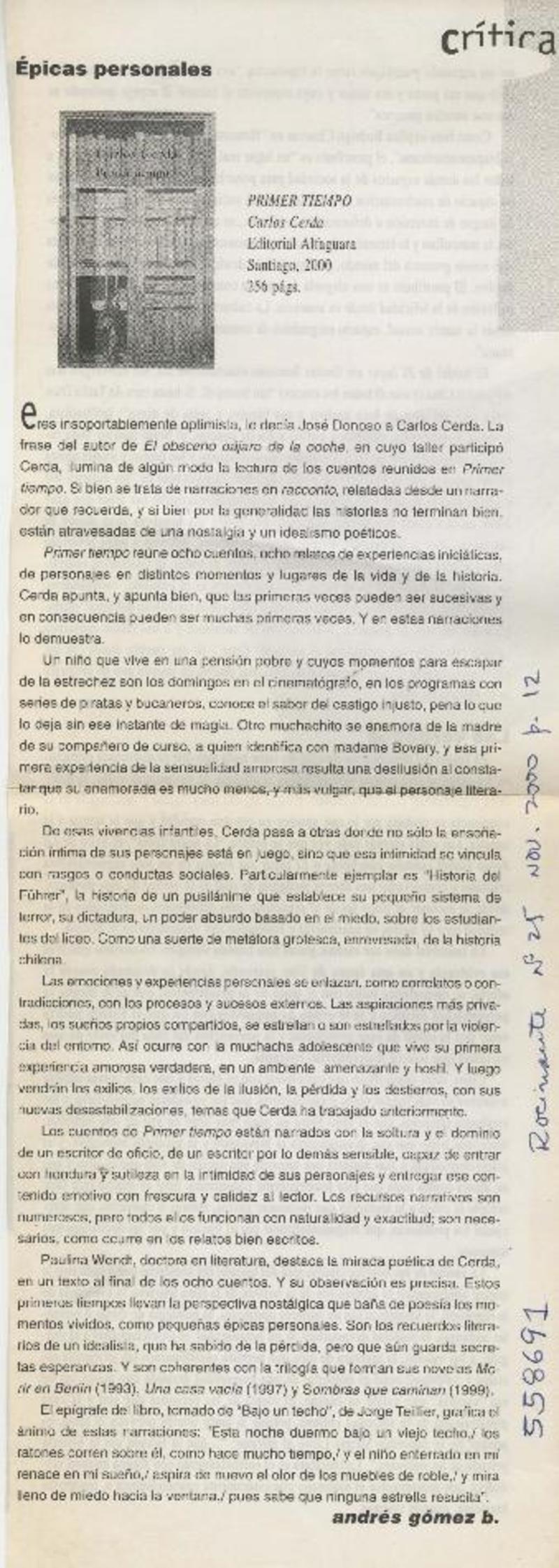 Épicas personales [artículo] Andrés Gómez B.