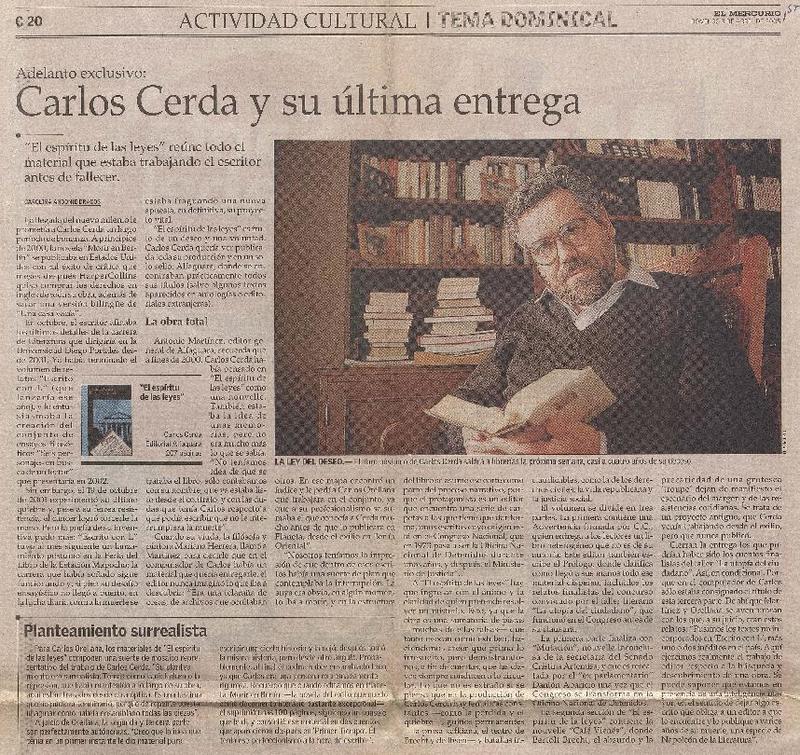 Hoy se lanza obra póstuma de Carlos Cerda [artículo] Sergio Tanhnuz.