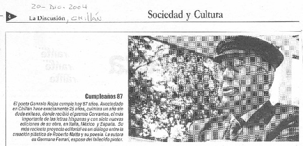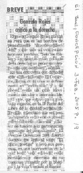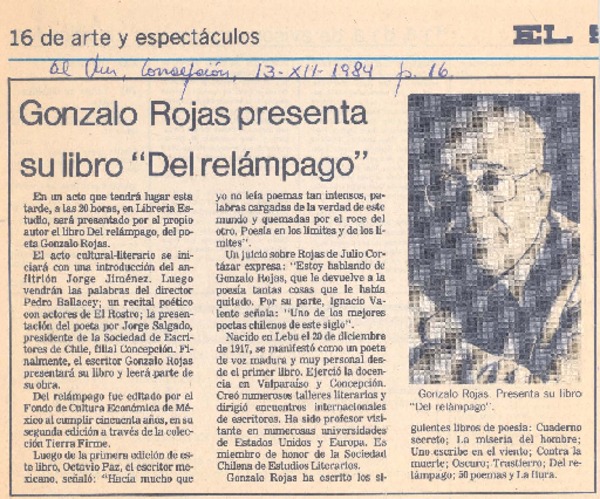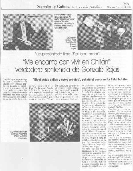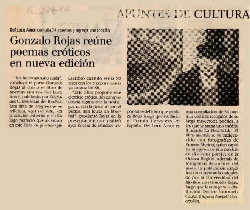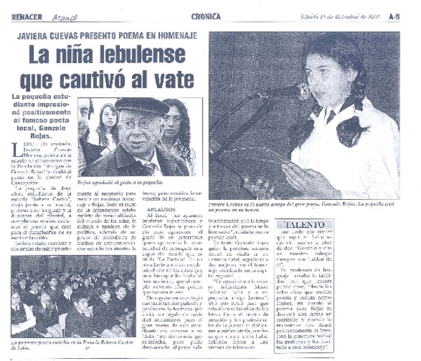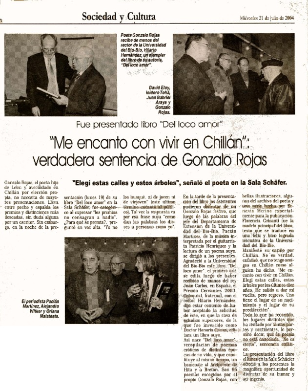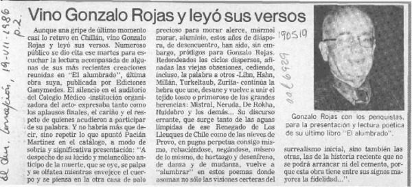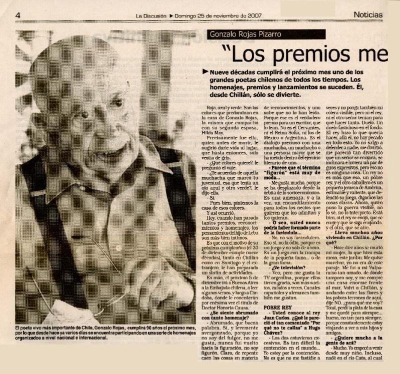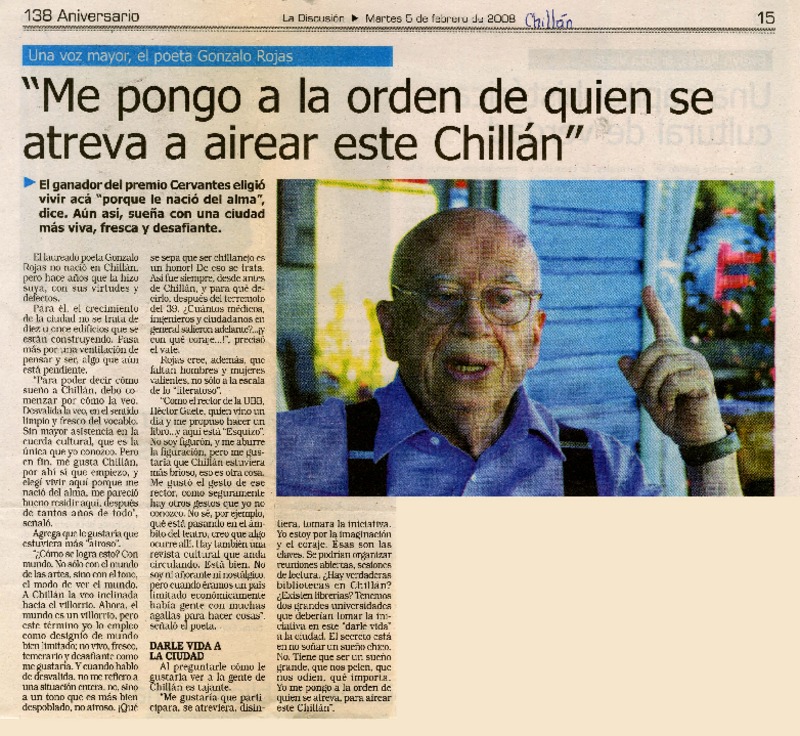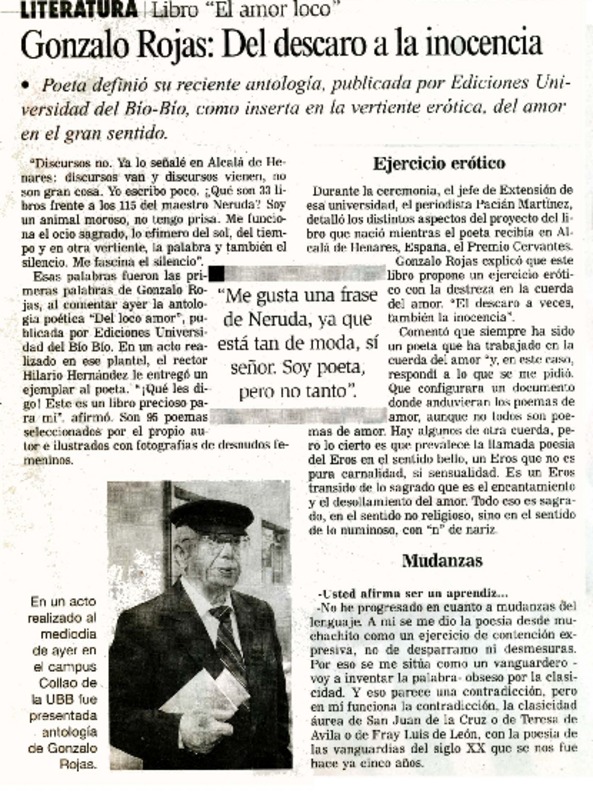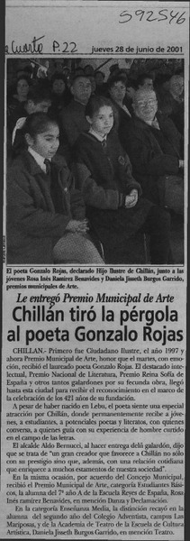 Chillán tiró la pérgola al poeta Gonzalo Rojas [artículo].