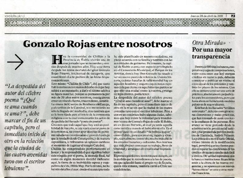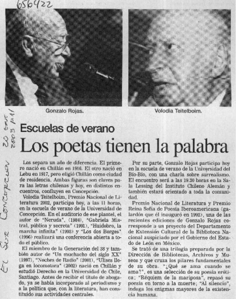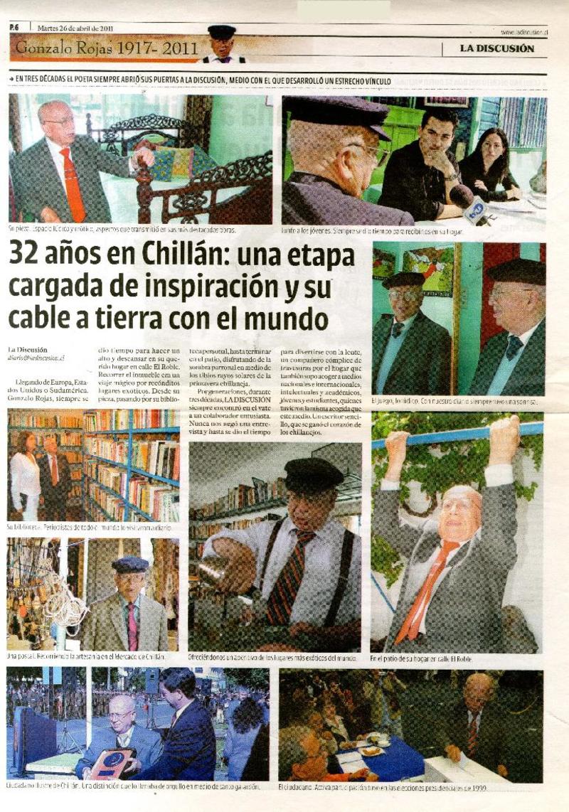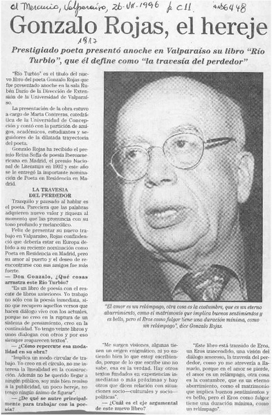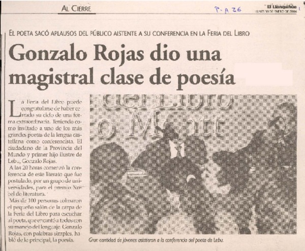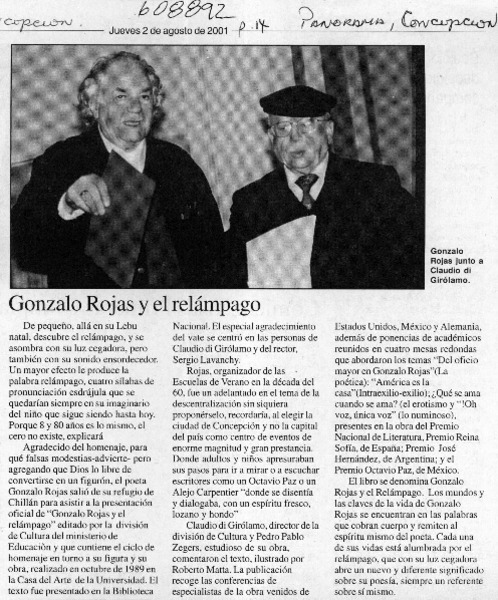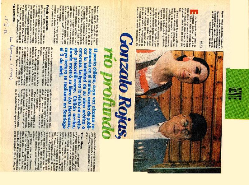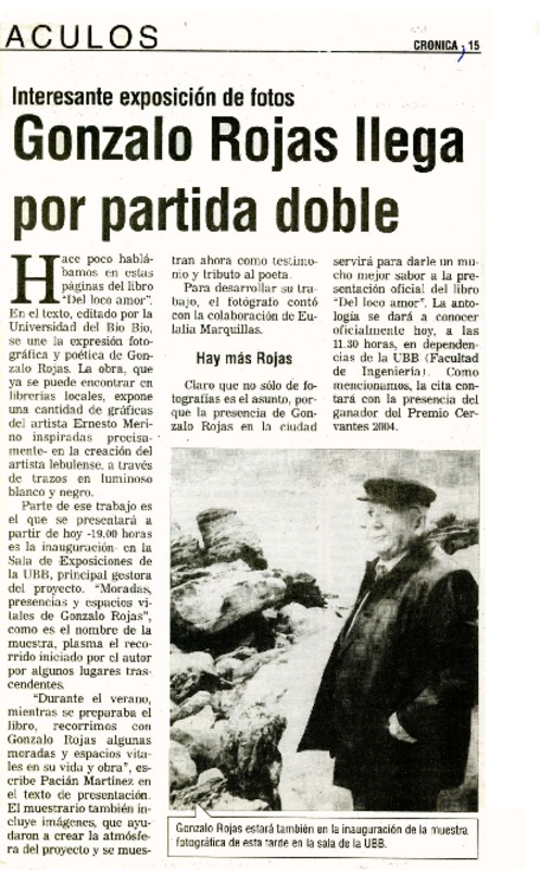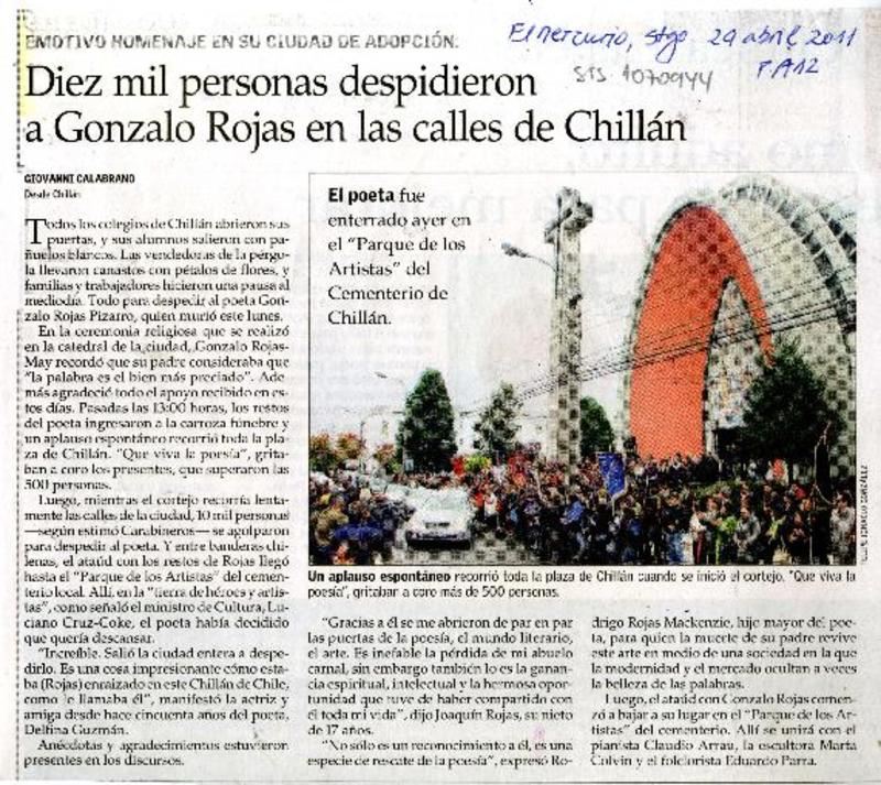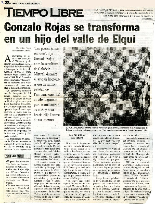 Chillán tiró la pérgola al poeta Gonzalo Rojas [artículo].