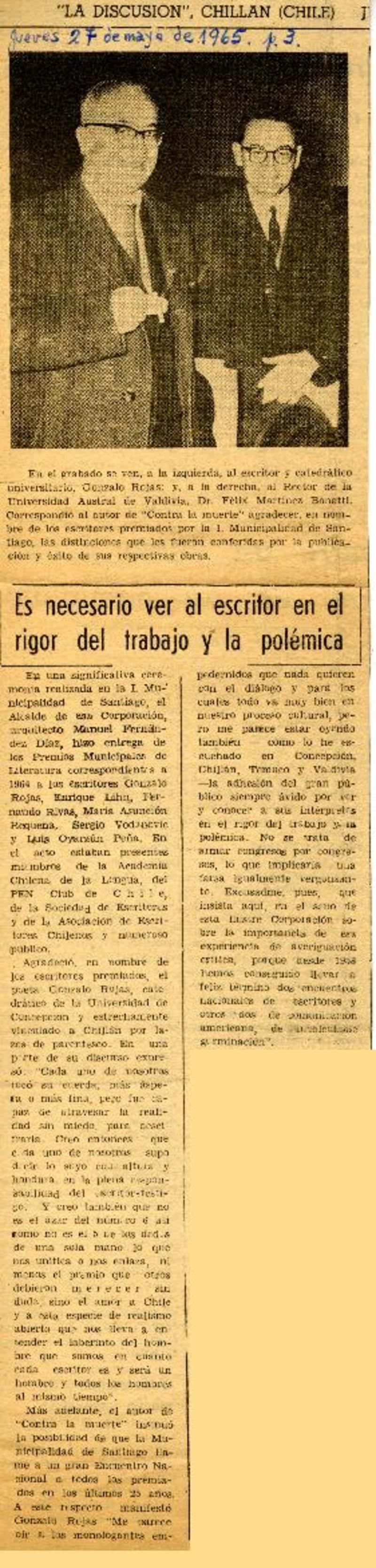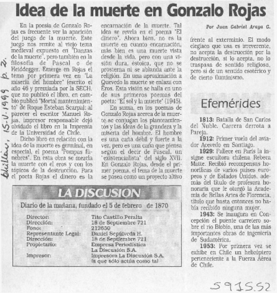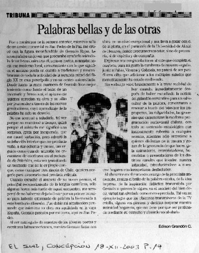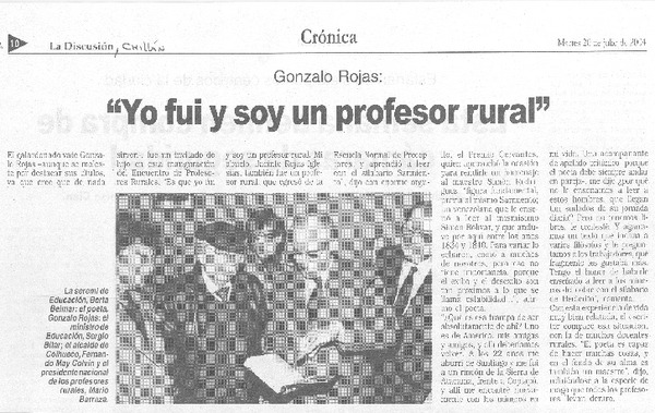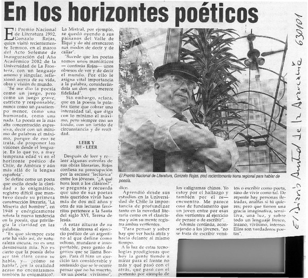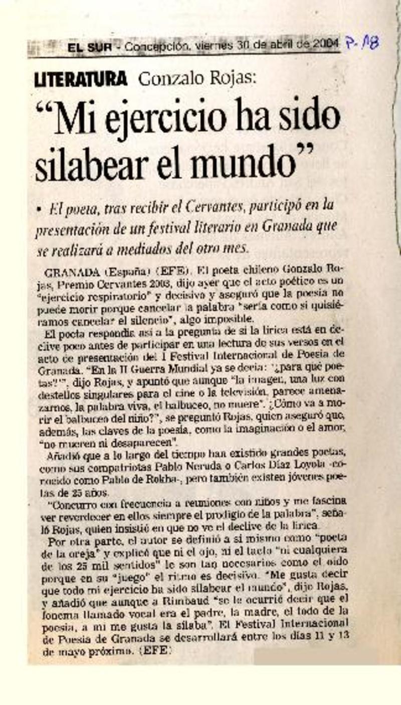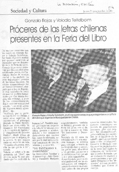 Chillán tiró la pérgola al poeta Gonzalo Rojas [artículo].