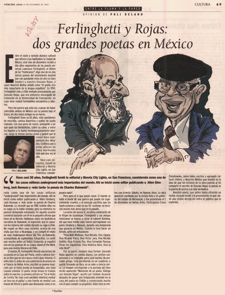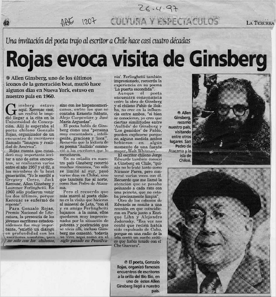 Rojas evoca visita de Ginsberg [artículo].