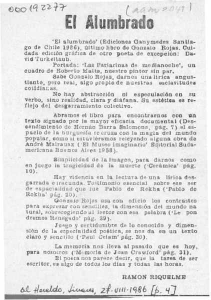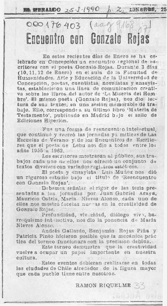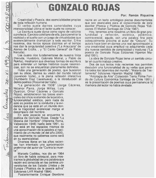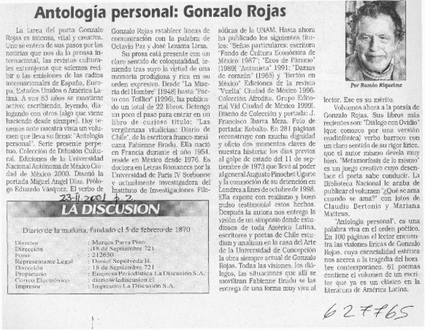 Antología personal, Gonzalo Rojas [artículo] Ramón Riquelme