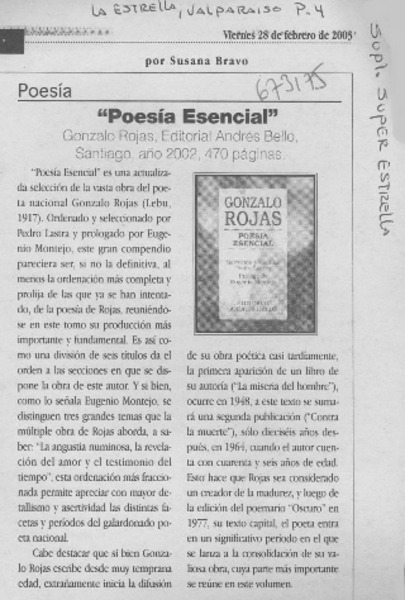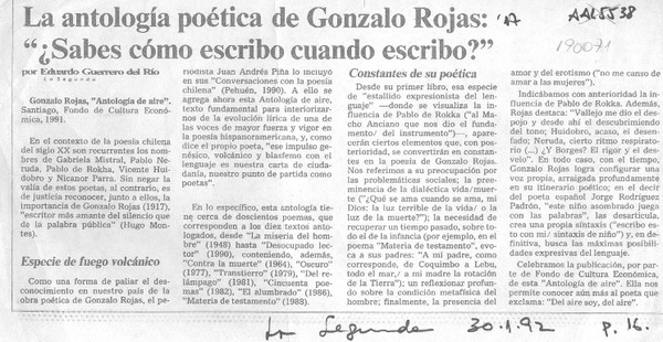 Antología poética de Gonzalo Rojas [artículo] Hugo Montes.