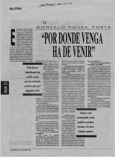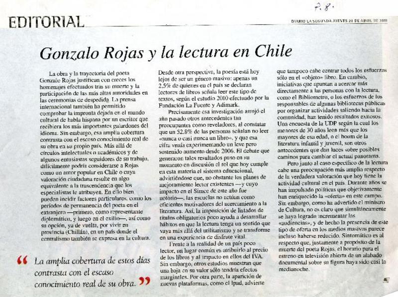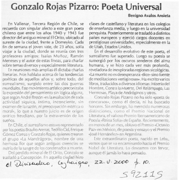 ULS sitingue a Gonzalo Rojas [artículo]