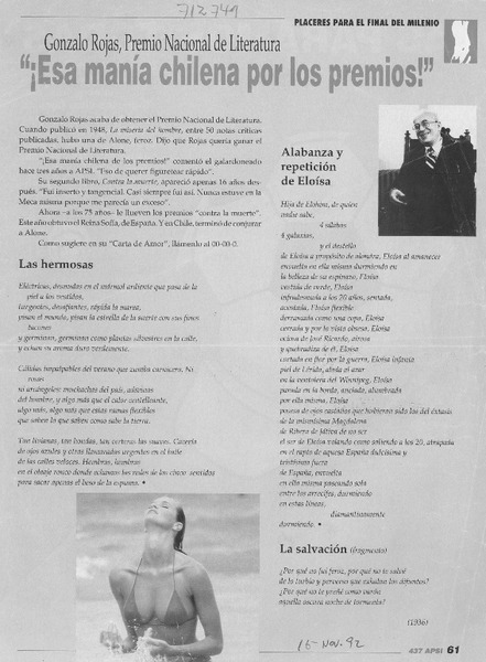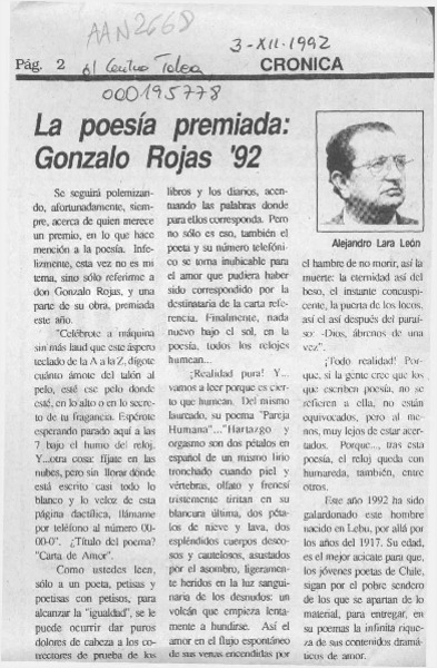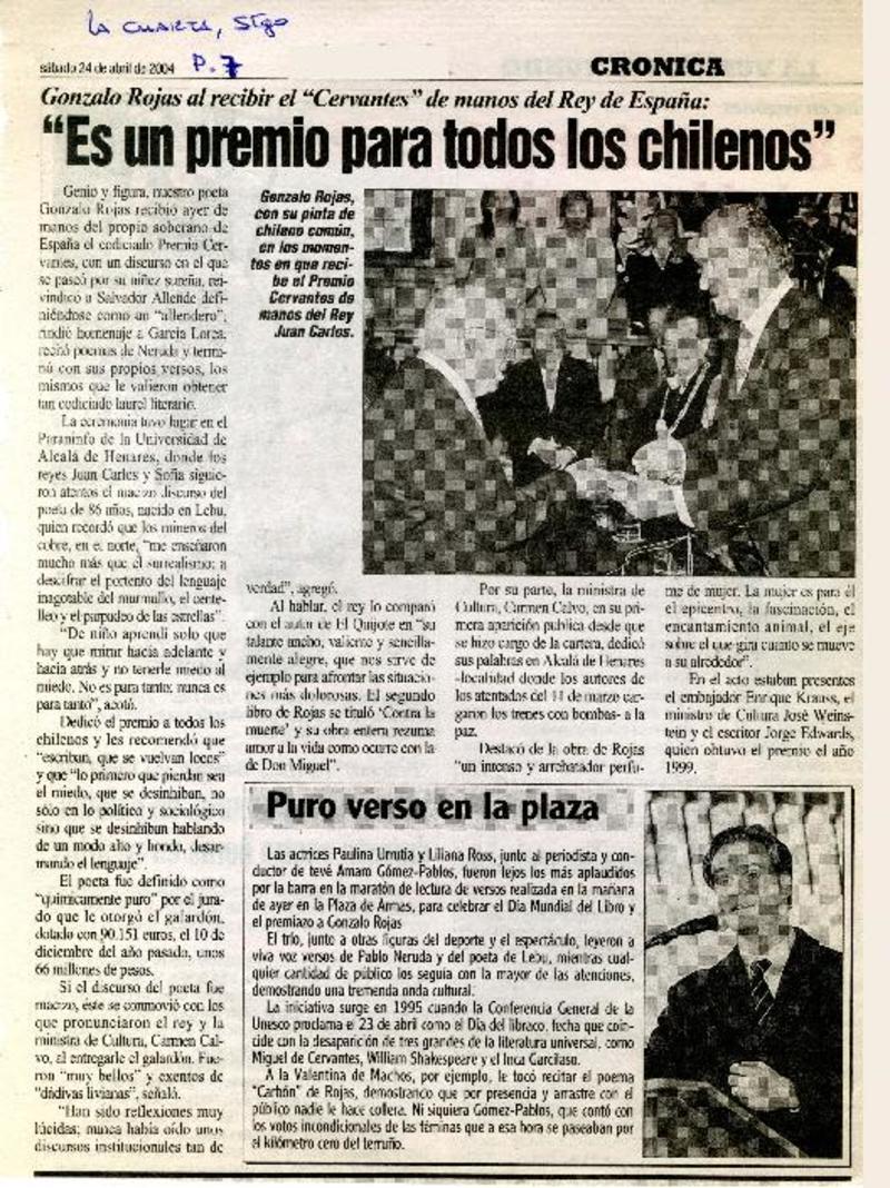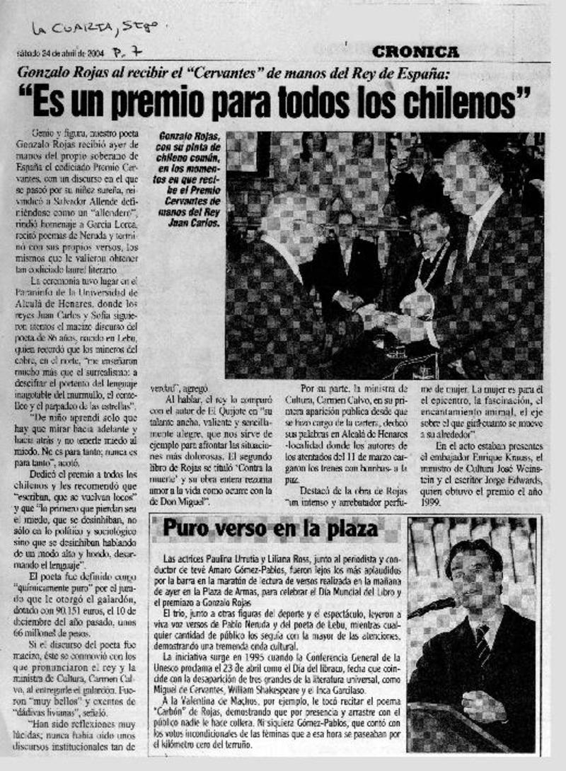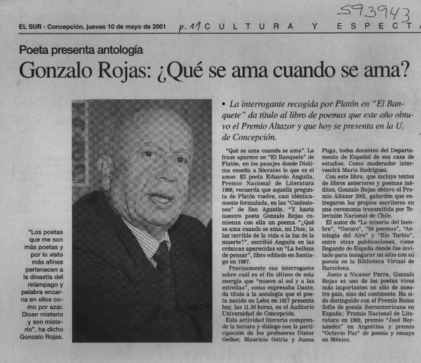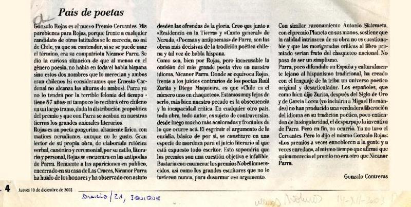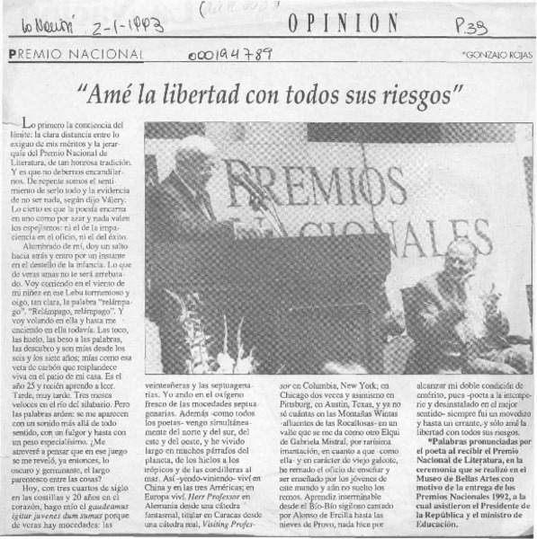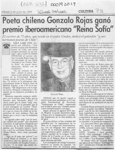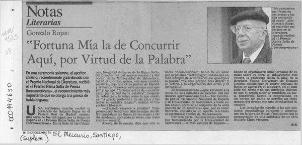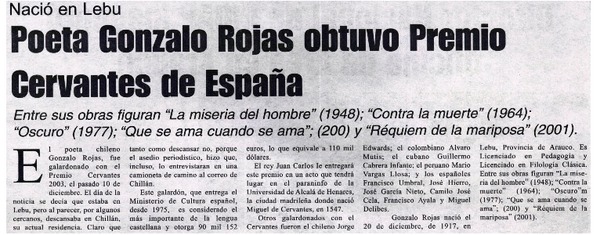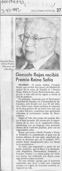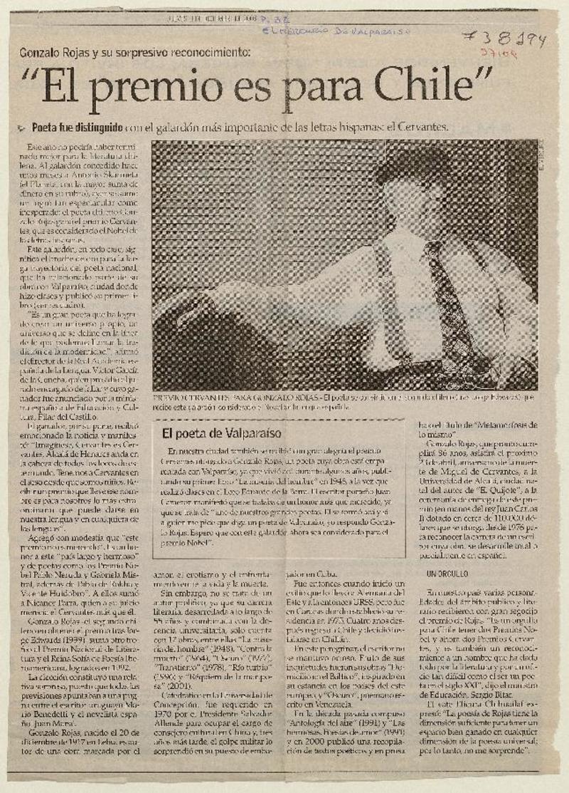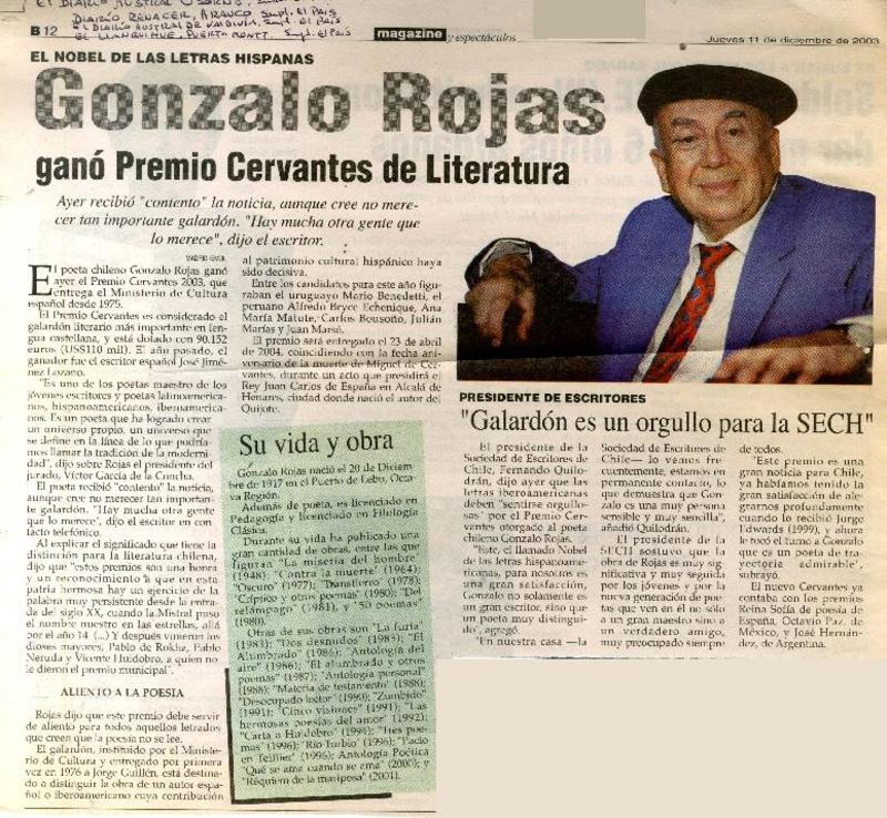 Chileno Gonzalo Rojas recibió premio Cervantes. [artículo]