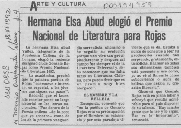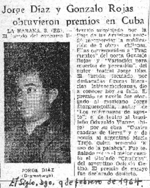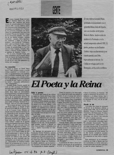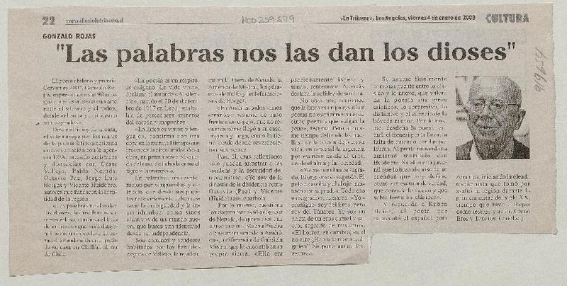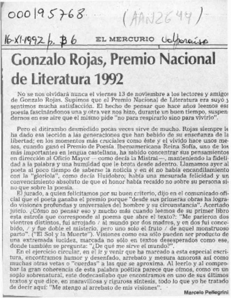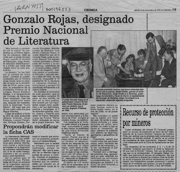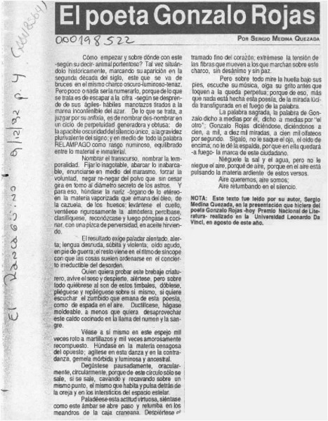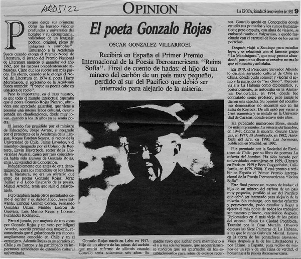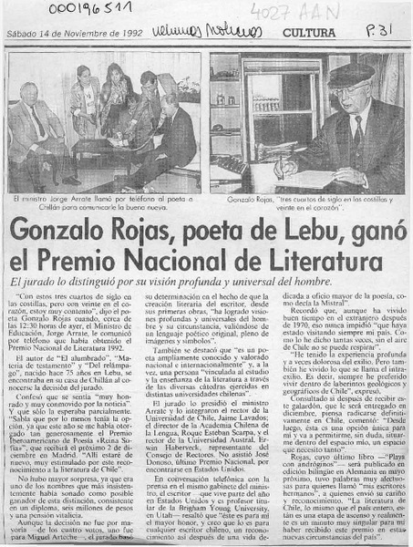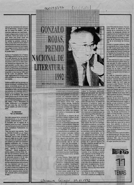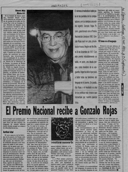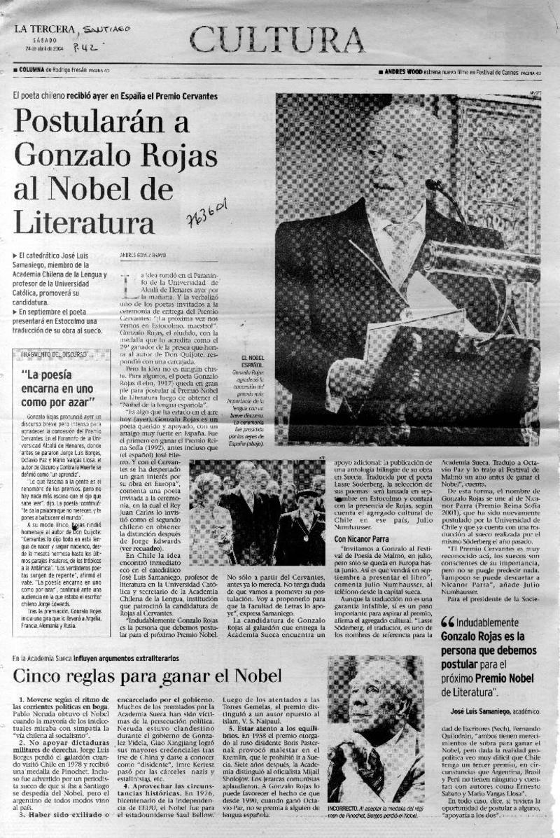Chile apuesta por Gonzalo Rojas para el Nobel. [artículo] R.C.