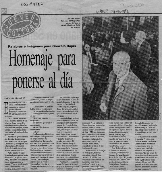 Reyes de España inauguran muestra sobre obra de Gonzalo Rojas. [artículo]