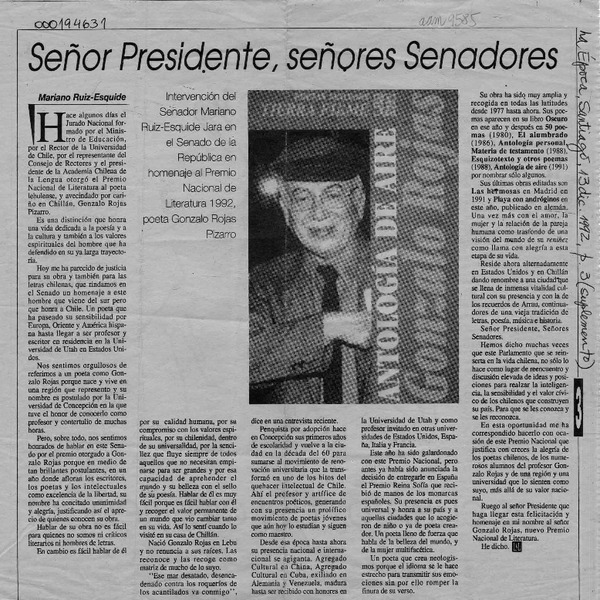 Señor Presidente, señores Senadores [artículo] Mariano Ruiz-Esquide.