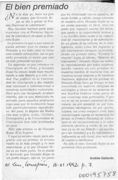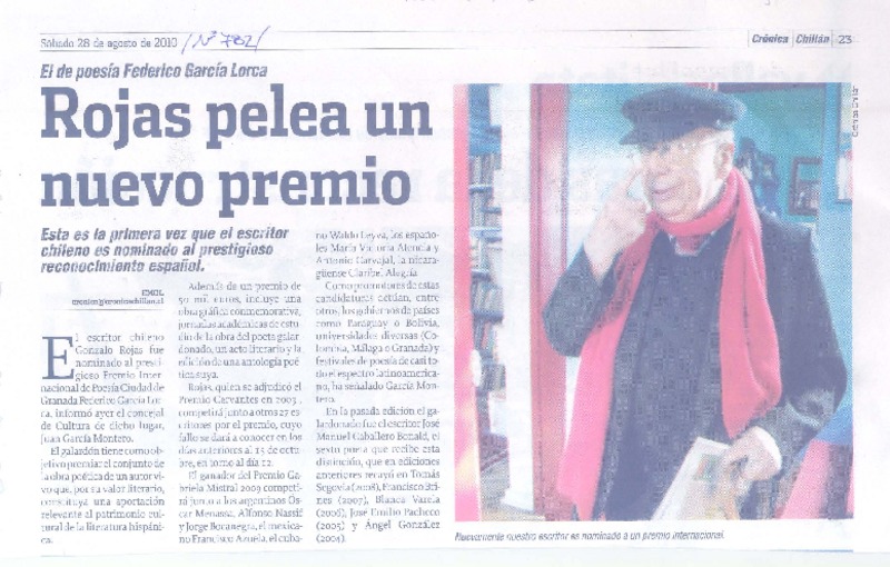 Rojas pelea un nuevo premio [artículo].