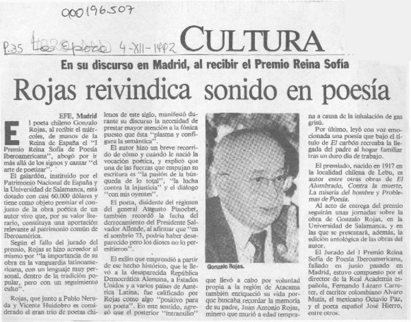 Rojas reivindica sonido en poesía [artículo].