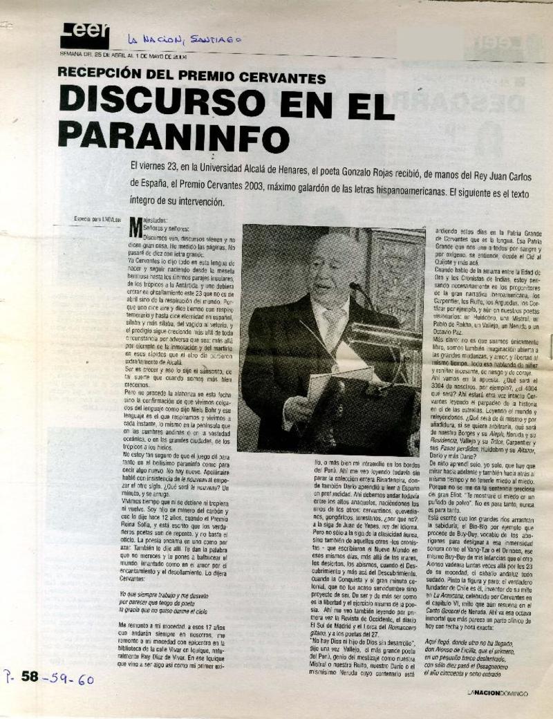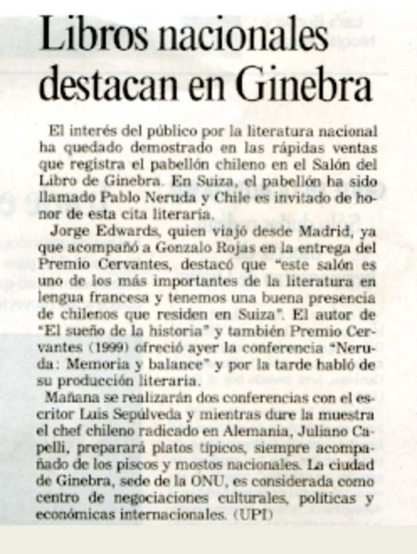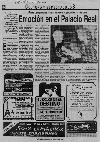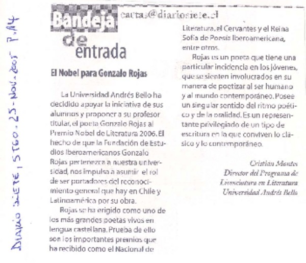 Bandeja de entrada : el Nobel para Gonzalo Rojas [artículo] Cristián Montes.