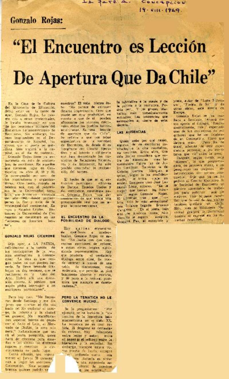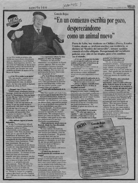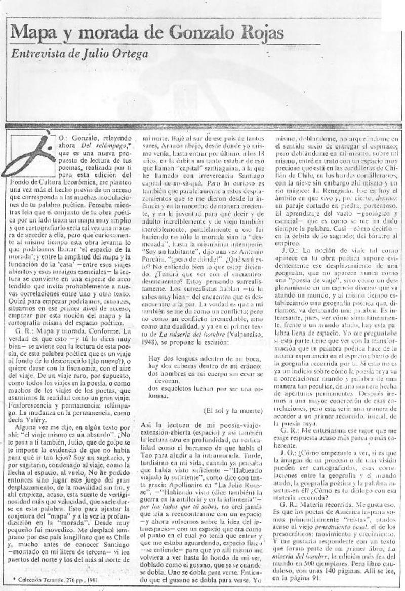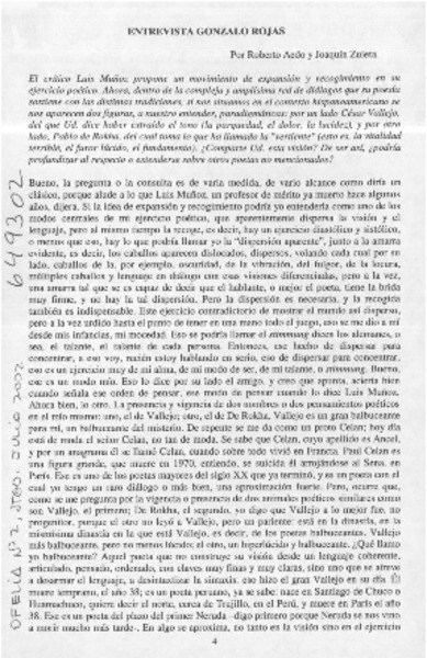 Autores chilenos - Rojas, Gonzalo - Entrevista