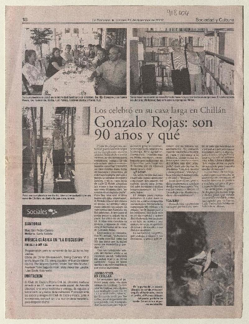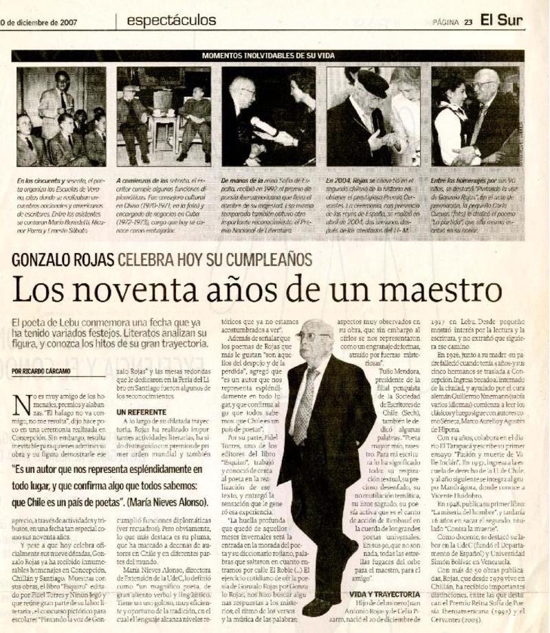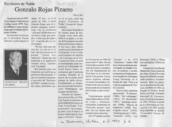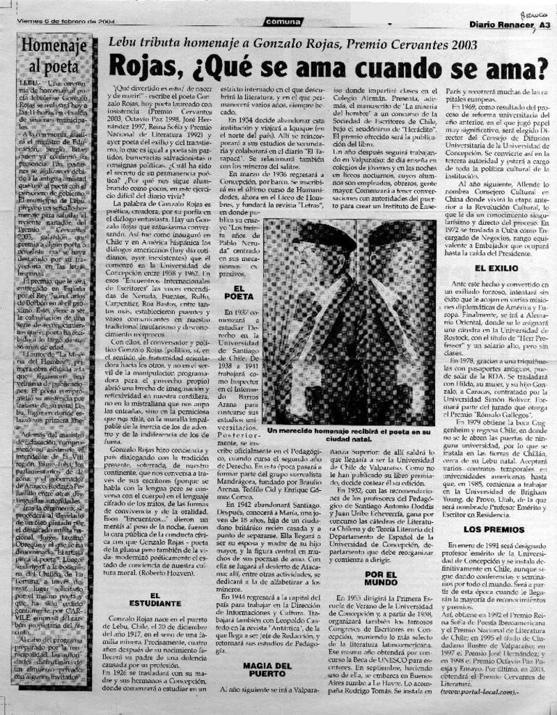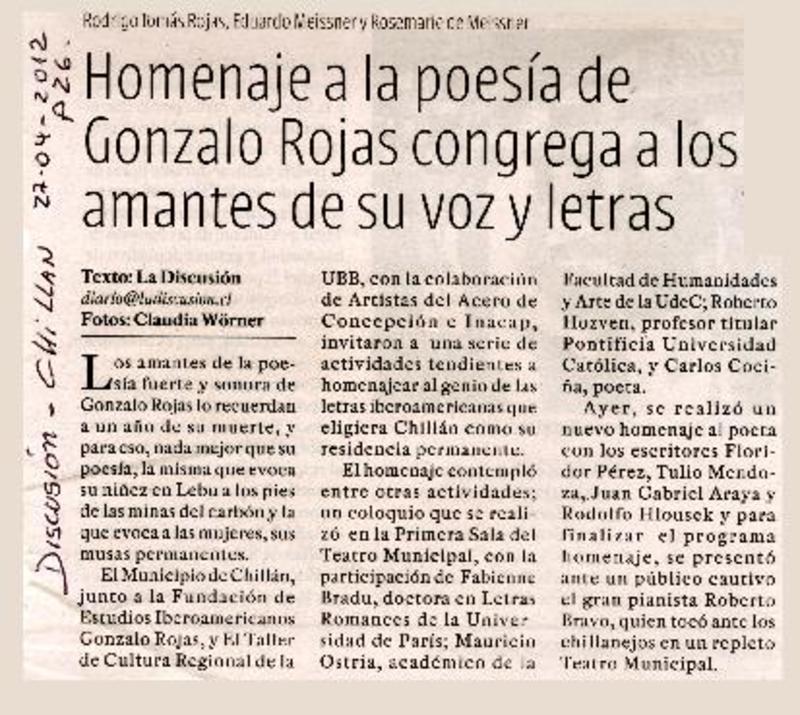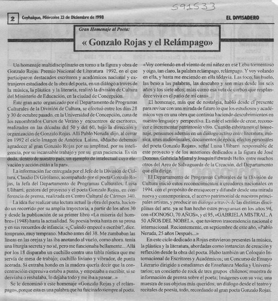Chillán rendirá homenaje al poeta Gonzalo Rojas P. [artículo].