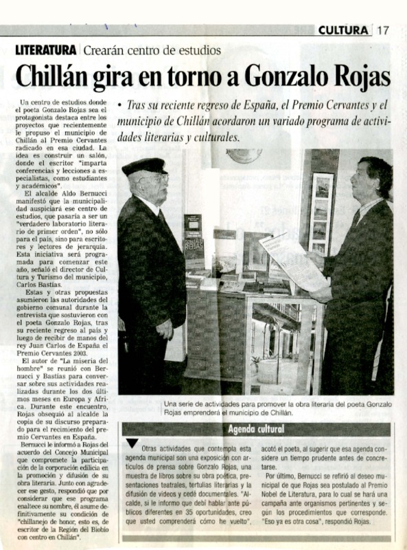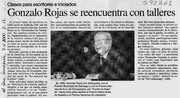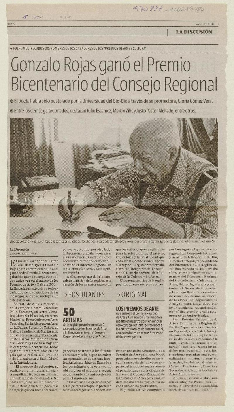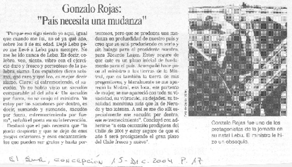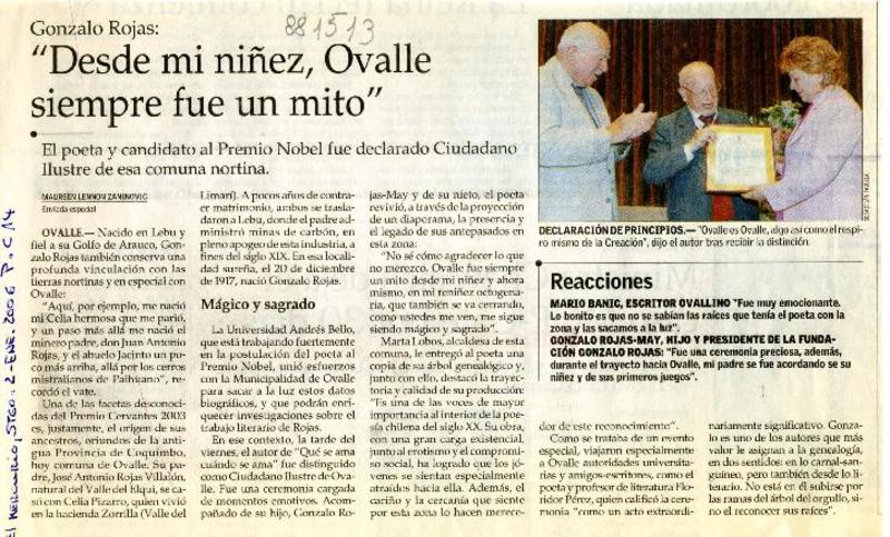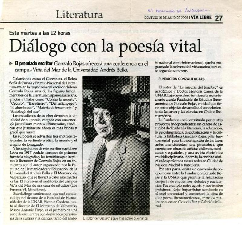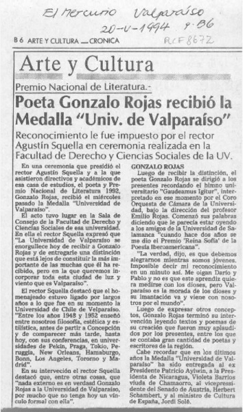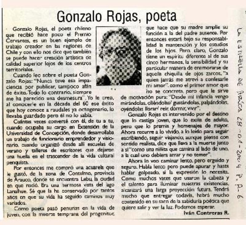 Anuncian creación de centro cultural Gonzalo Rojas [artículo]