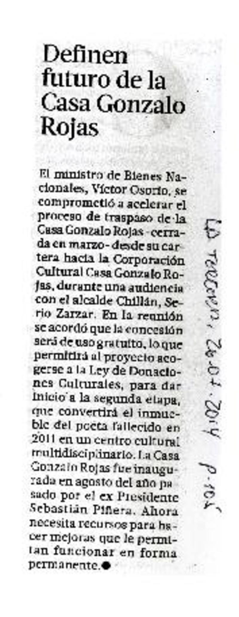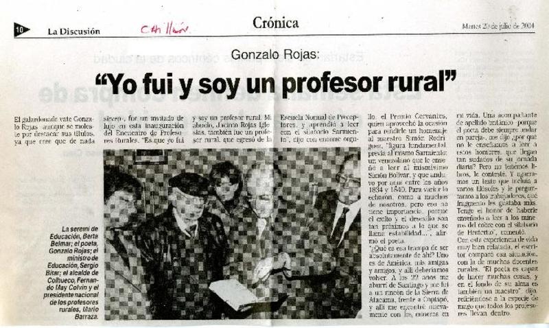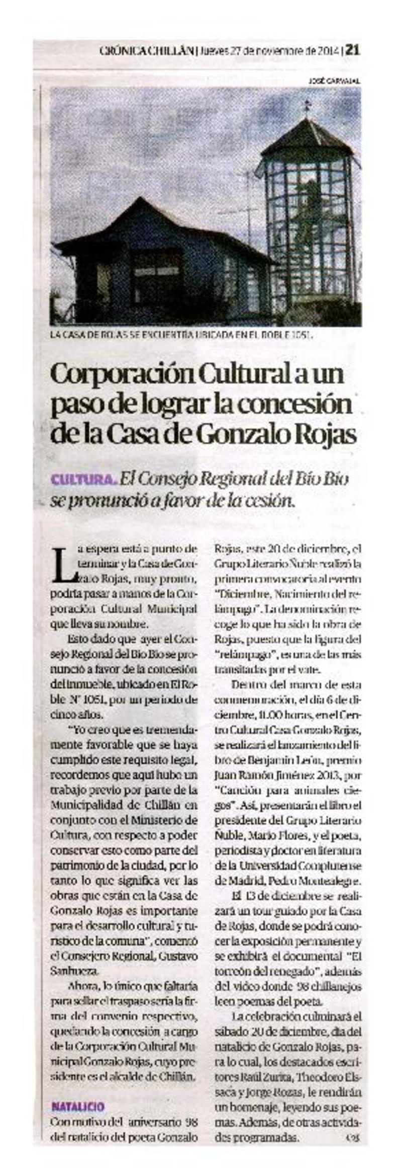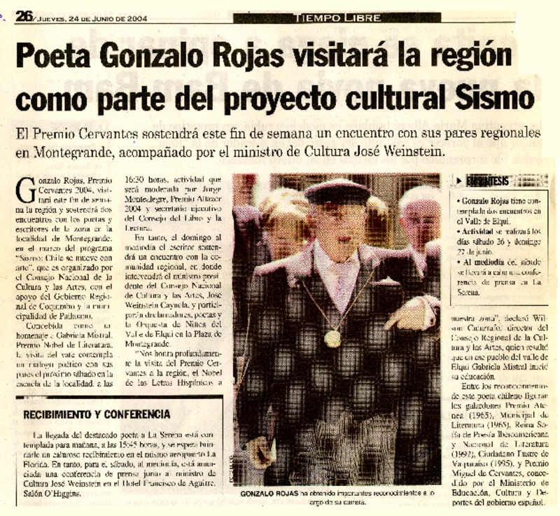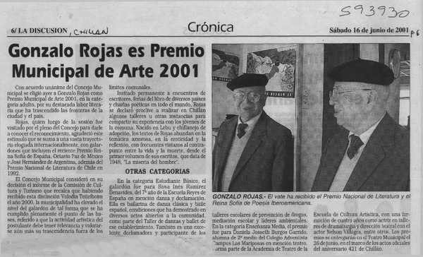 Anuncian creación de centro cultural Gonzalo Rojas [artículo]