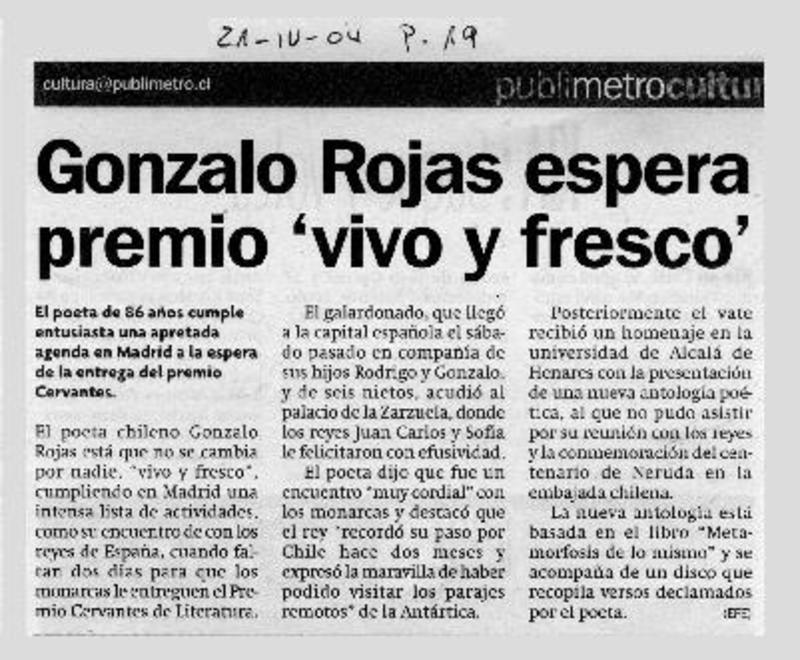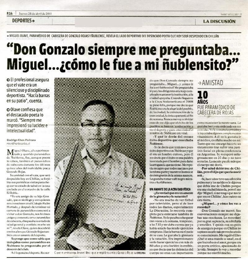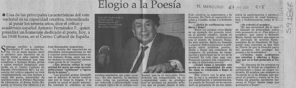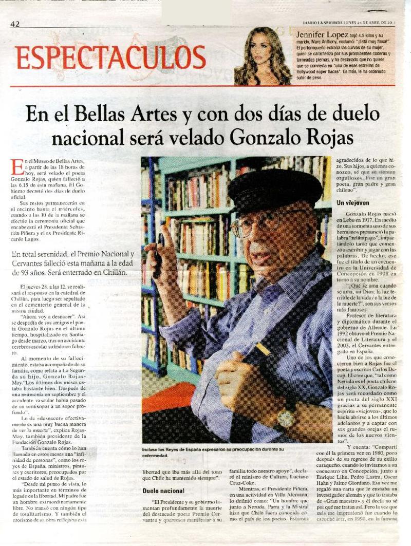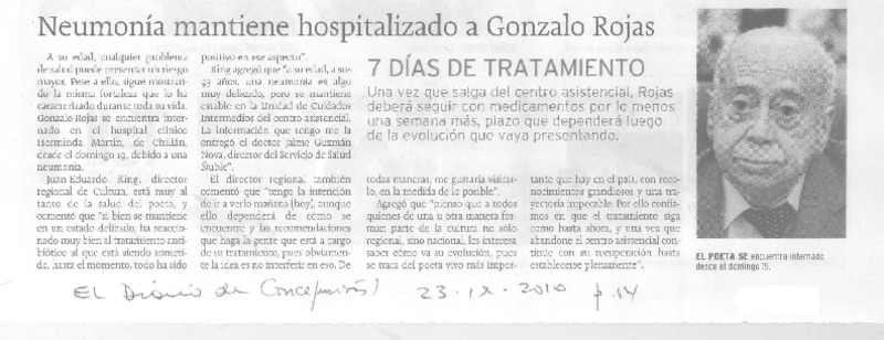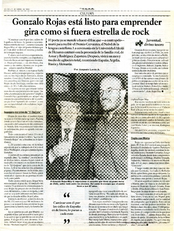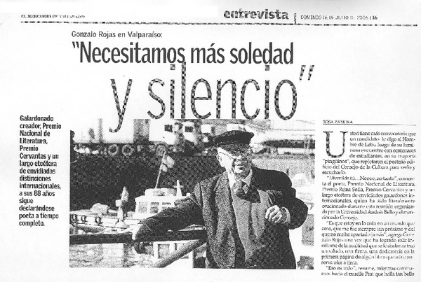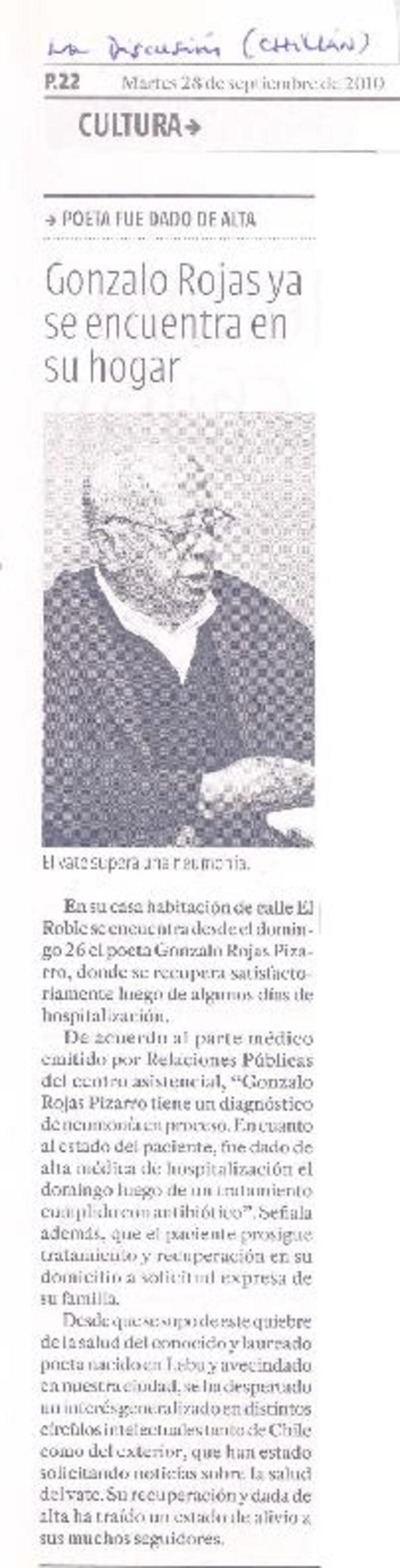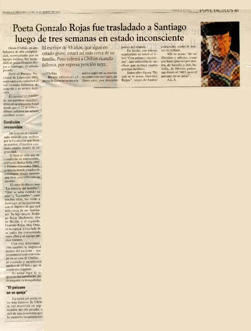 Salud de Gonzalo Rojas es monitoreada las 24 horas [artículo] Valeska Muñoz Ramírez.