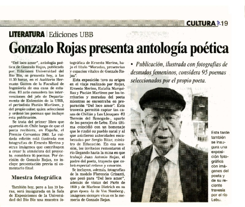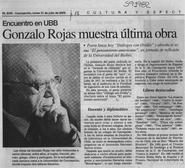 UBB presentó antología poética de Gonzalo Rojas [artículo]