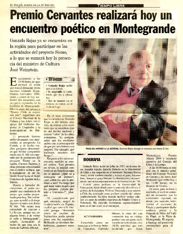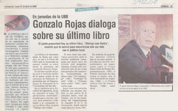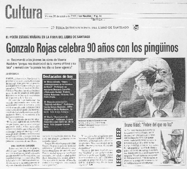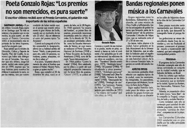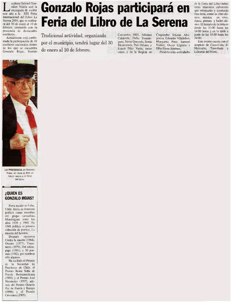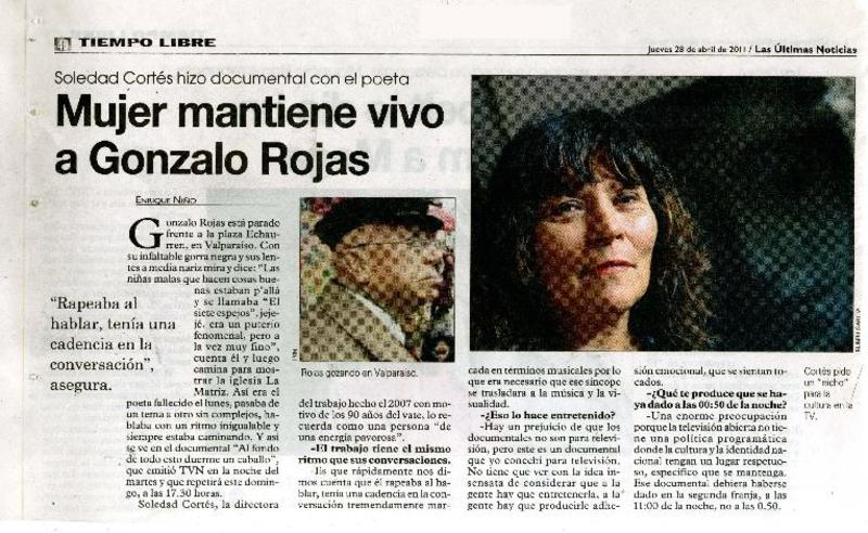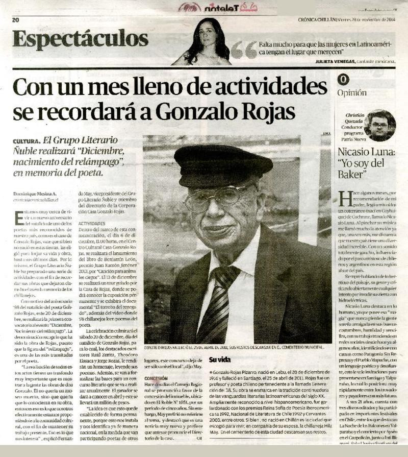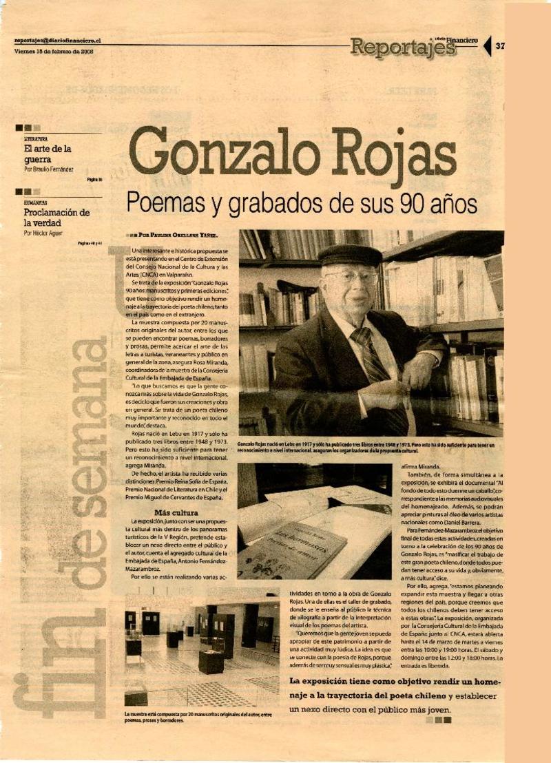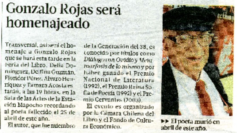 Con música, cine y poesía recordarán a Gonzalo Rojas [artículo] Carolina Marcos.