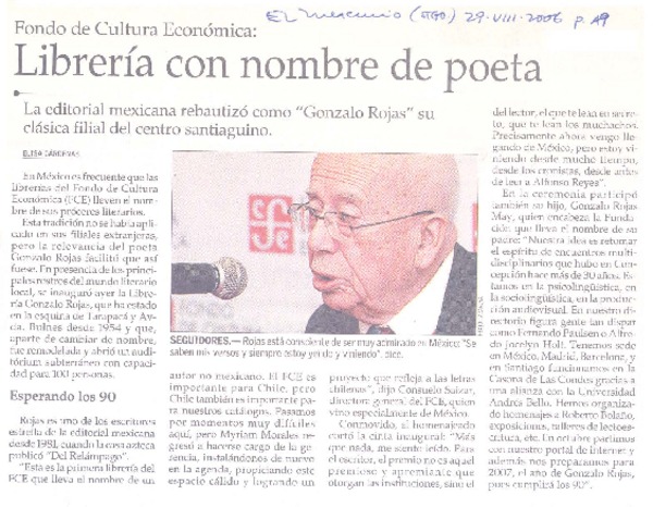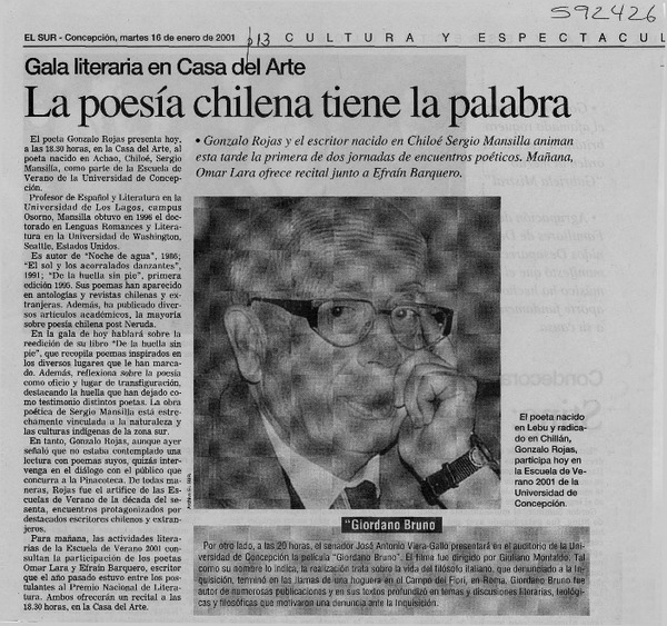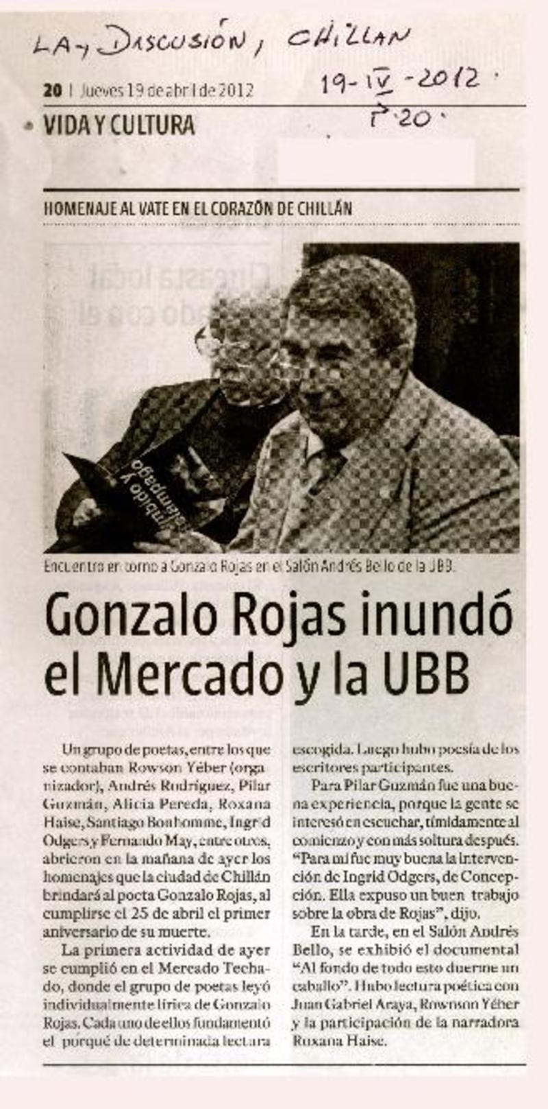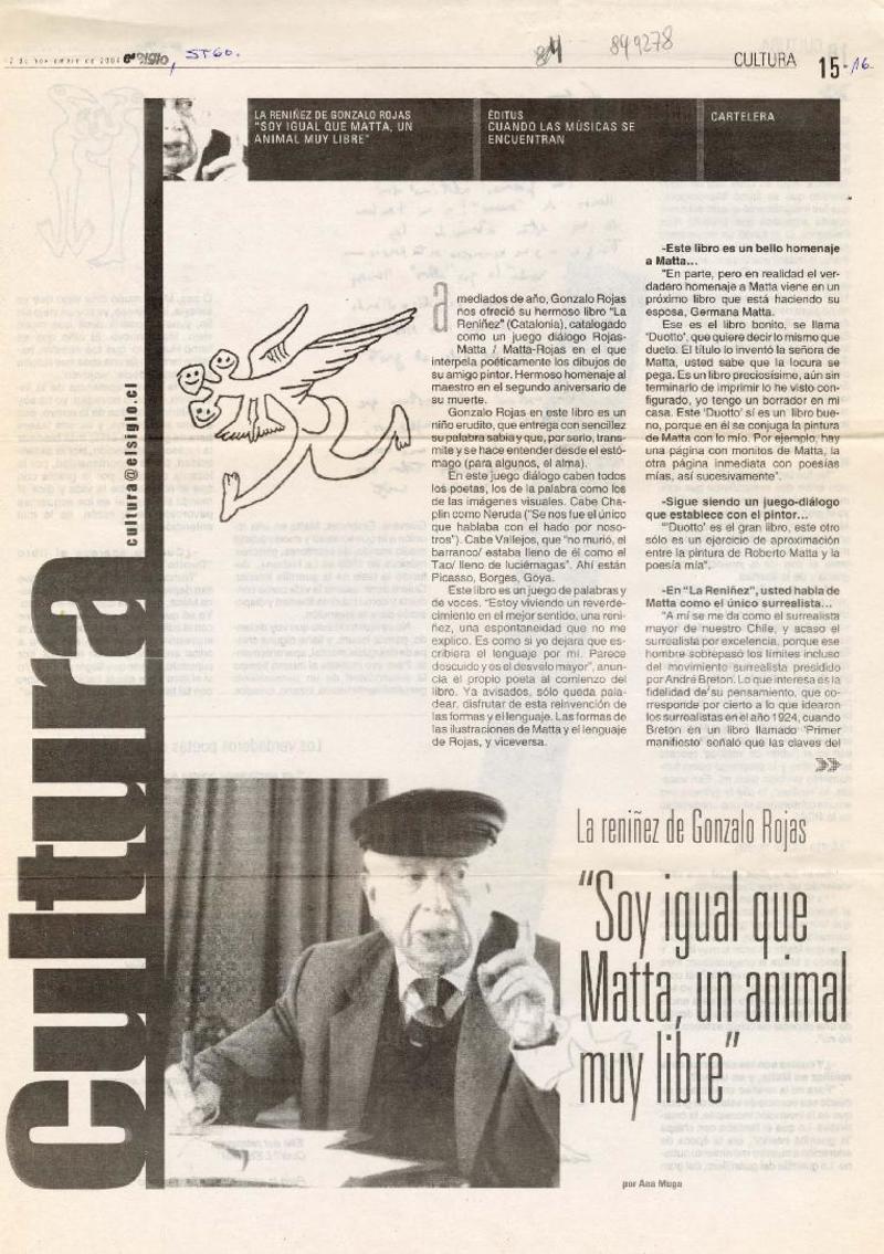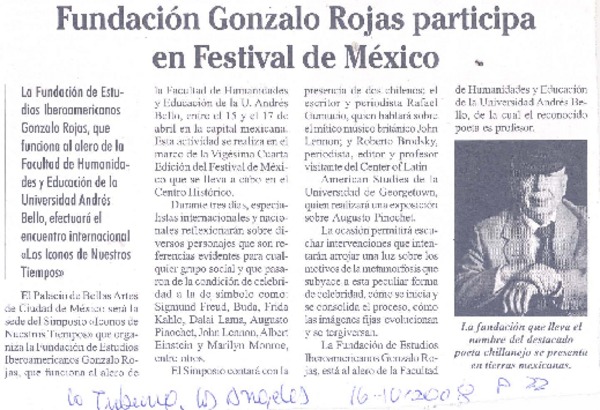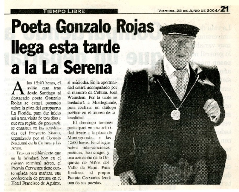 Con música, cine y poesía recordarán a Gonzalo Rojas [artículo] Carolina Marcos.