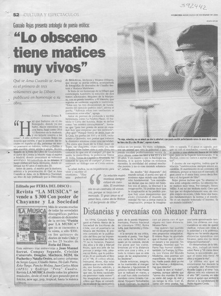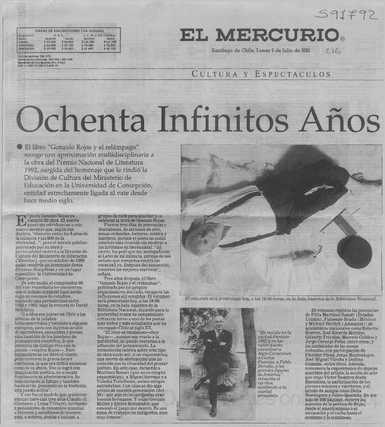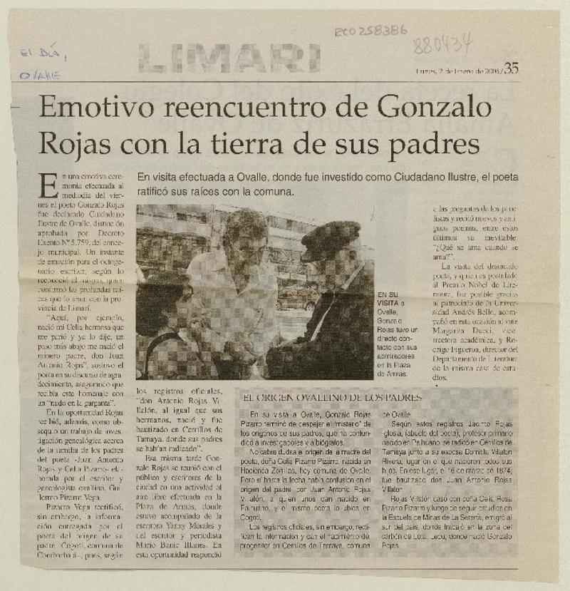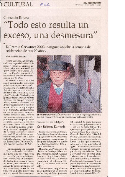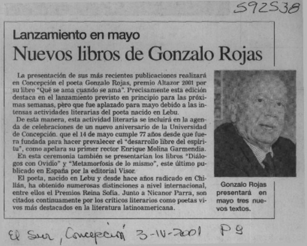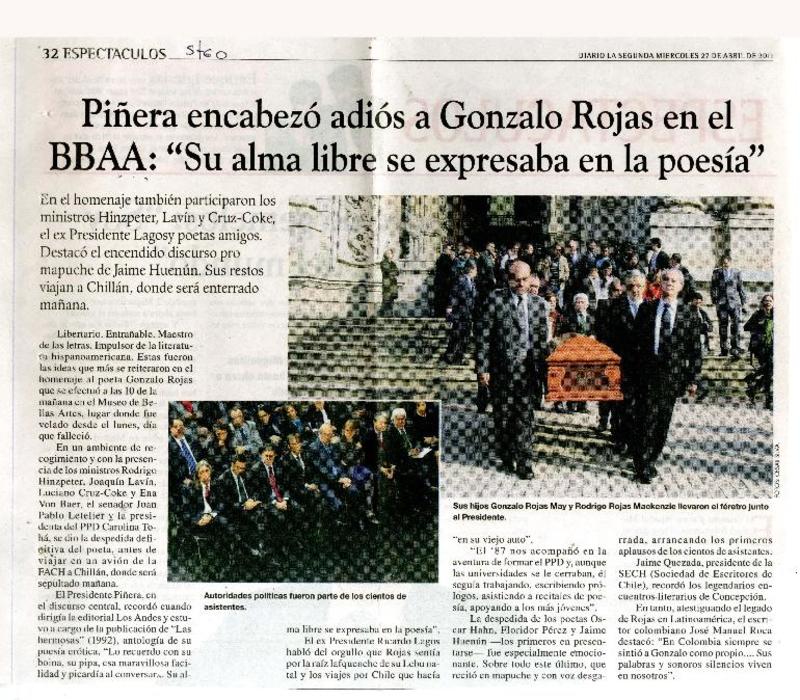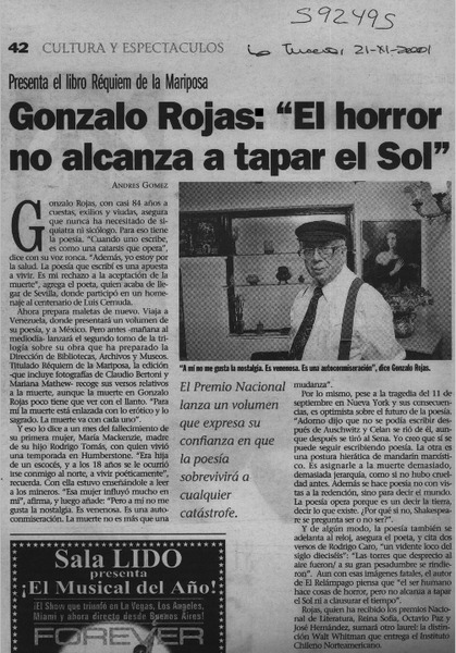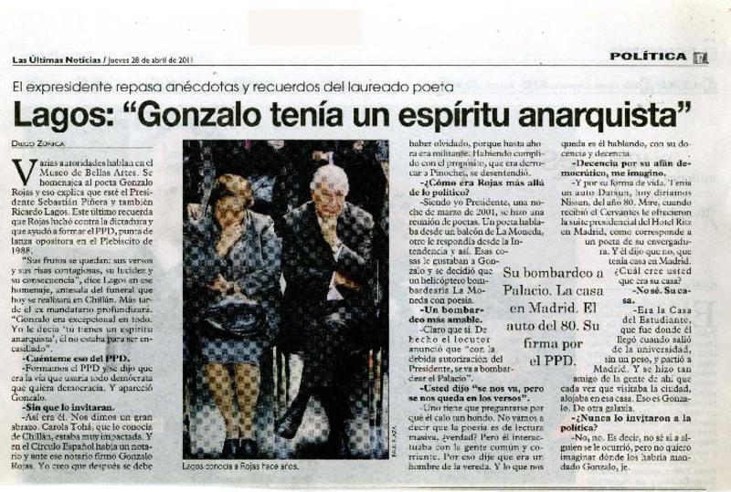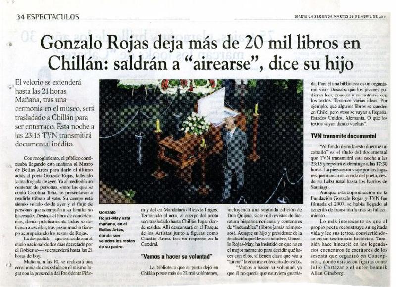 A dos años de su muerte, publican las obras completas de Gonzalo Rojas [artículo] Roberto Careaga C.