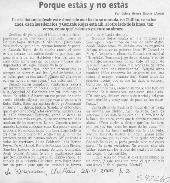 Chillán y Gonzalo Rojas [artículo] Abelardo Troy.