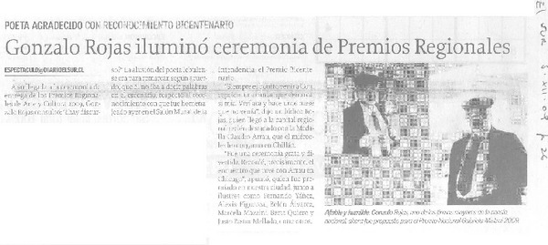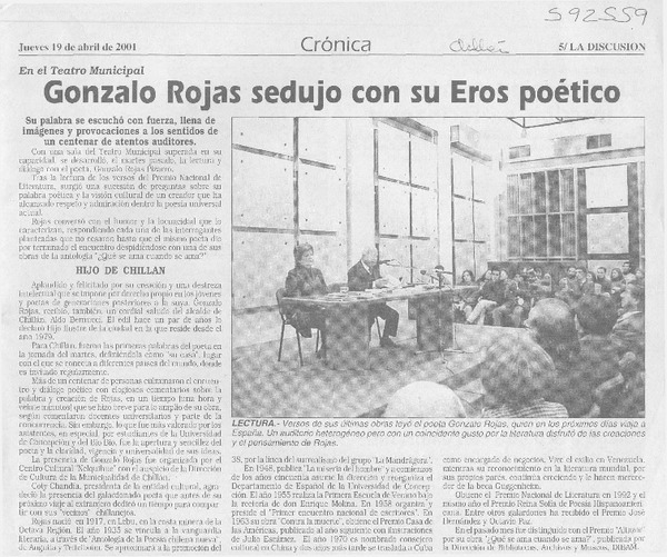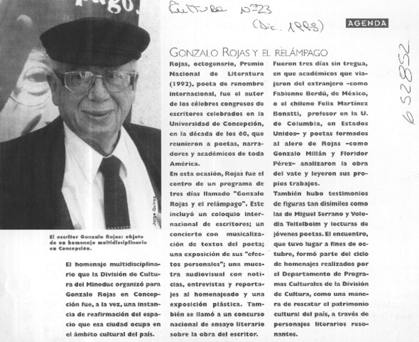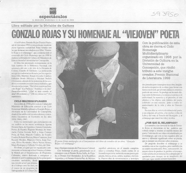 Chillán homenajeó a poeta Gonzalo Rojas por su obra [artículo].
