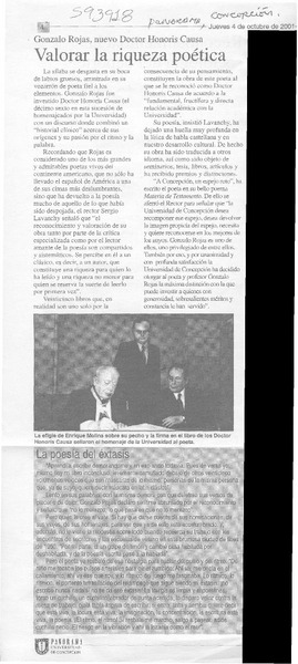 Valorar la riqueza poética [artículo]