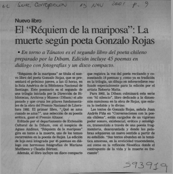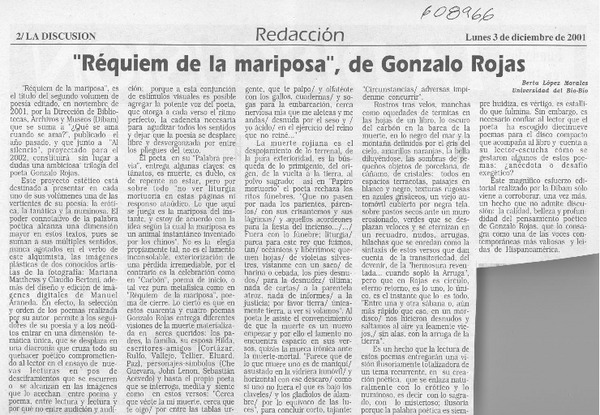 Réquiem de la mariposa de Gonzalo Rojas [artículo] Berta López Morales