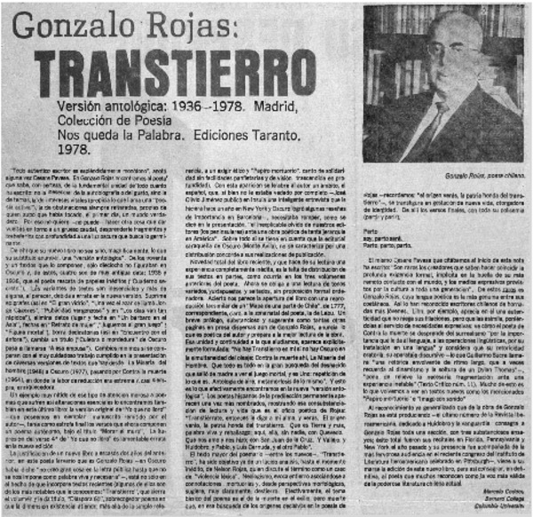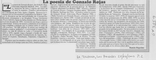 Algo más sobre Gonzalo Rojas [artículo] Ramiro Rivas Rudisky.