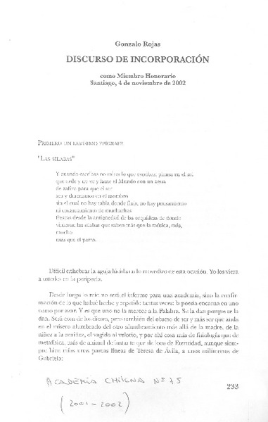 Autores chilenos - Rojas, Gonzalo - Tres poemas