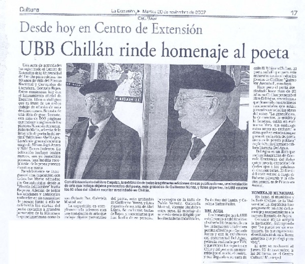 UBB Chillán rinde homenaje al poeta [artículo]