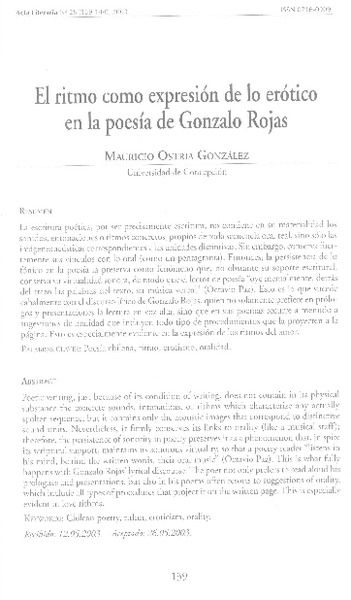 Aproximación a la poesía de Gonzalo Rojas [artículo] Mauricio Ostria González.