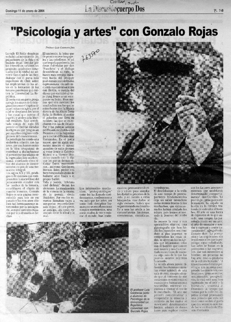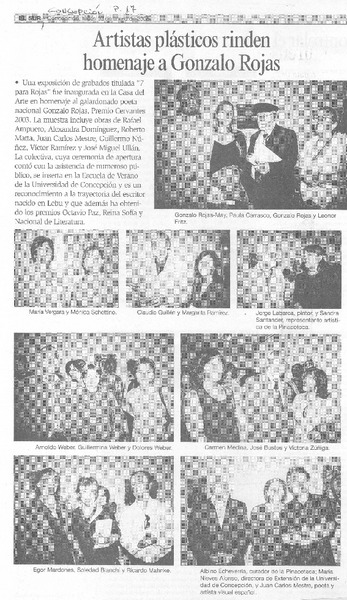 Artístas plásticos rinden homenaje a Gonzalo Rojas [artículo].