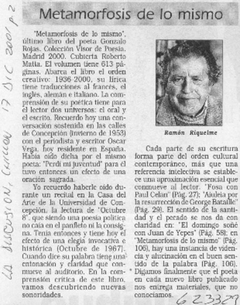 Autores chilenos - Rojas, Gonzalo - Entrevista - Metamorfosis de lo mismo