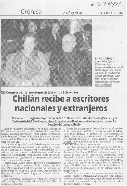 Chillán recibe a escritores nacionales y extranjeros [artículo]