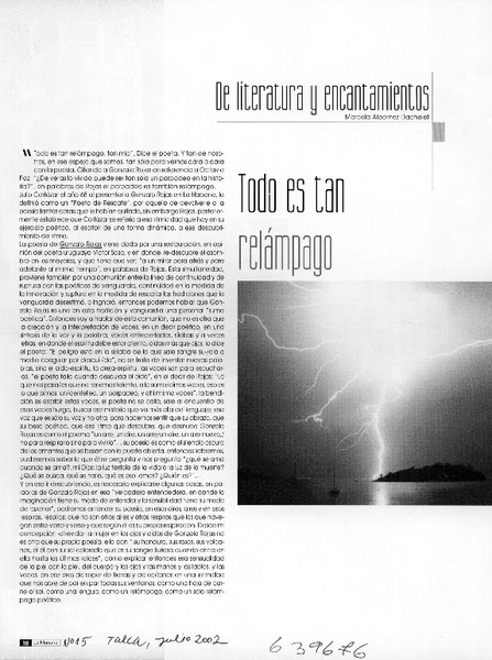 Todo es tan relámpago [artículo] Marcela Albornoz Dachelet