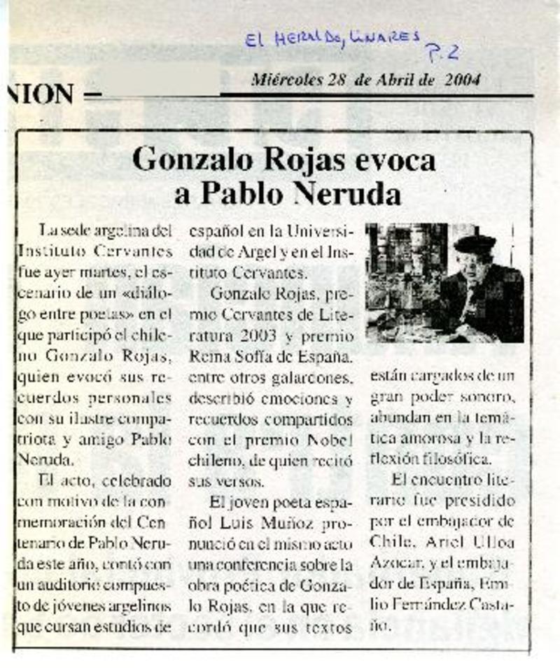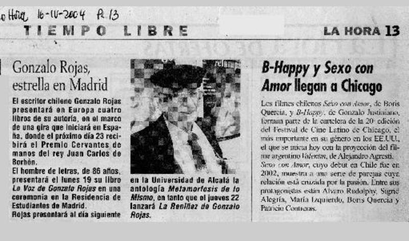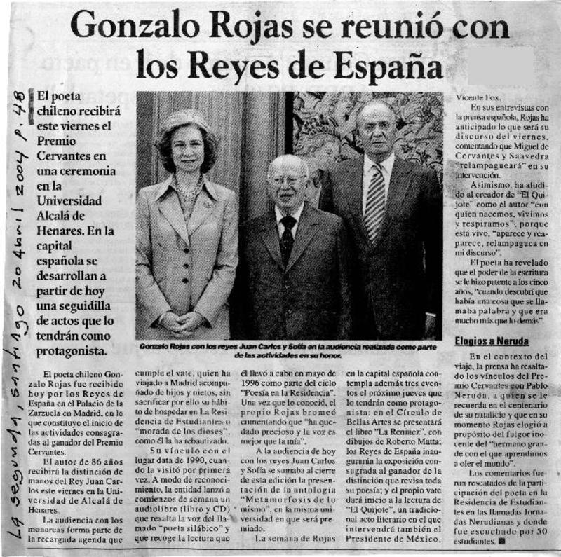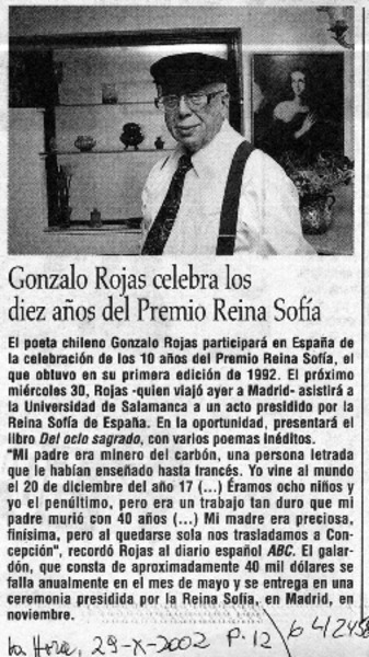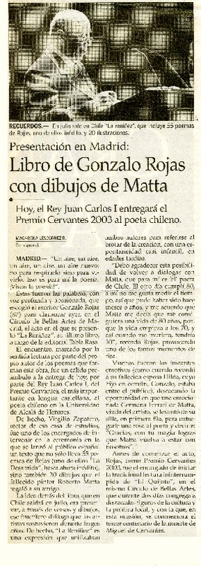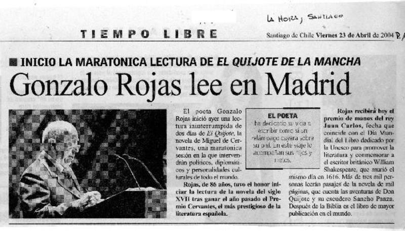Reyes inauguran exposición sobre Gonzalo Rojas en Alcalá de Henares [artículo] Amparo Lavín.
