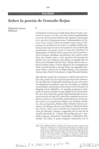 Sobre la poesía de Gonzalo Rojas [artículo] Eduardo Llanos Melussa