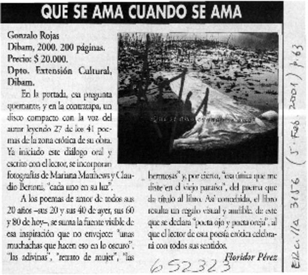 Rojas, ¿qué se ama cuando se ama?. [artículo]