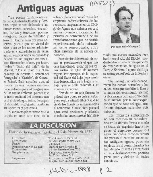 Antiguas aguas [artículo] Juan Gabriel Araya G.
